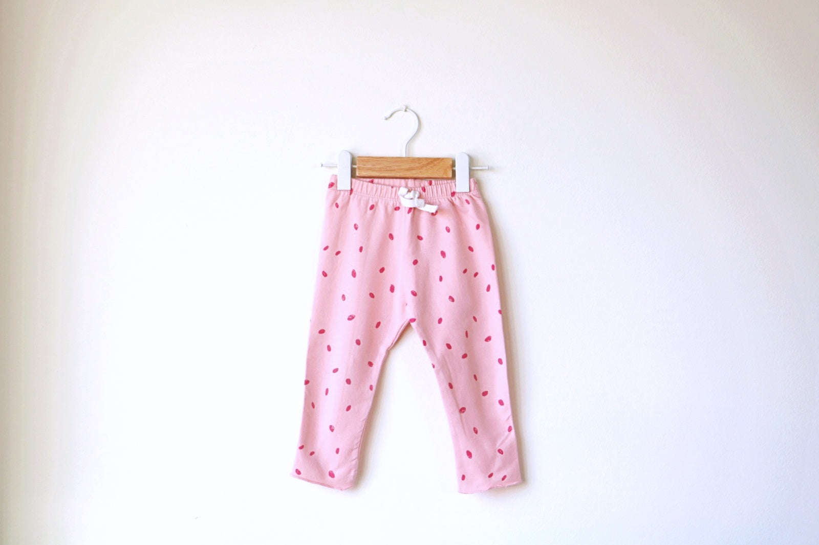 Calças moletão (fato treino) rosa-claras com padrão estampado de pintinhas. Interior térmico cardado para dias mais frios. Cintura elástica. Estilo Prático para o teu bebé de 18 - 24 meses (92cm) 👦🕶️