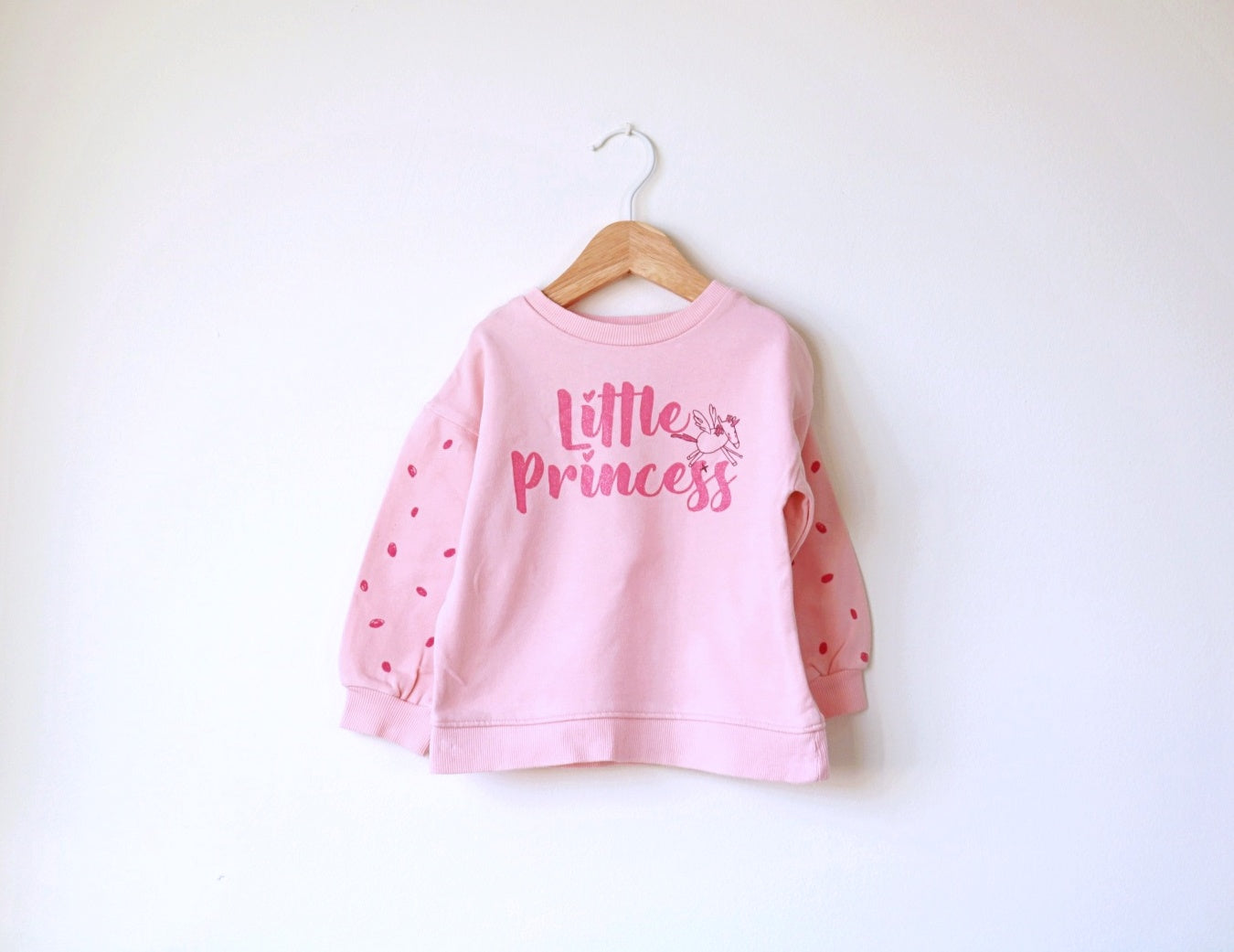 Camisola de Algodão Grossa rosa clara com estampado de texto e padrão de pintinhas nas mangas. Interior térmico cardado para dias mais frios. Extremidades caneladas para um ajuste perfeito. Estilo Prático para o teu bebé de 18 - 24 meses (92cm) 👦🕶️