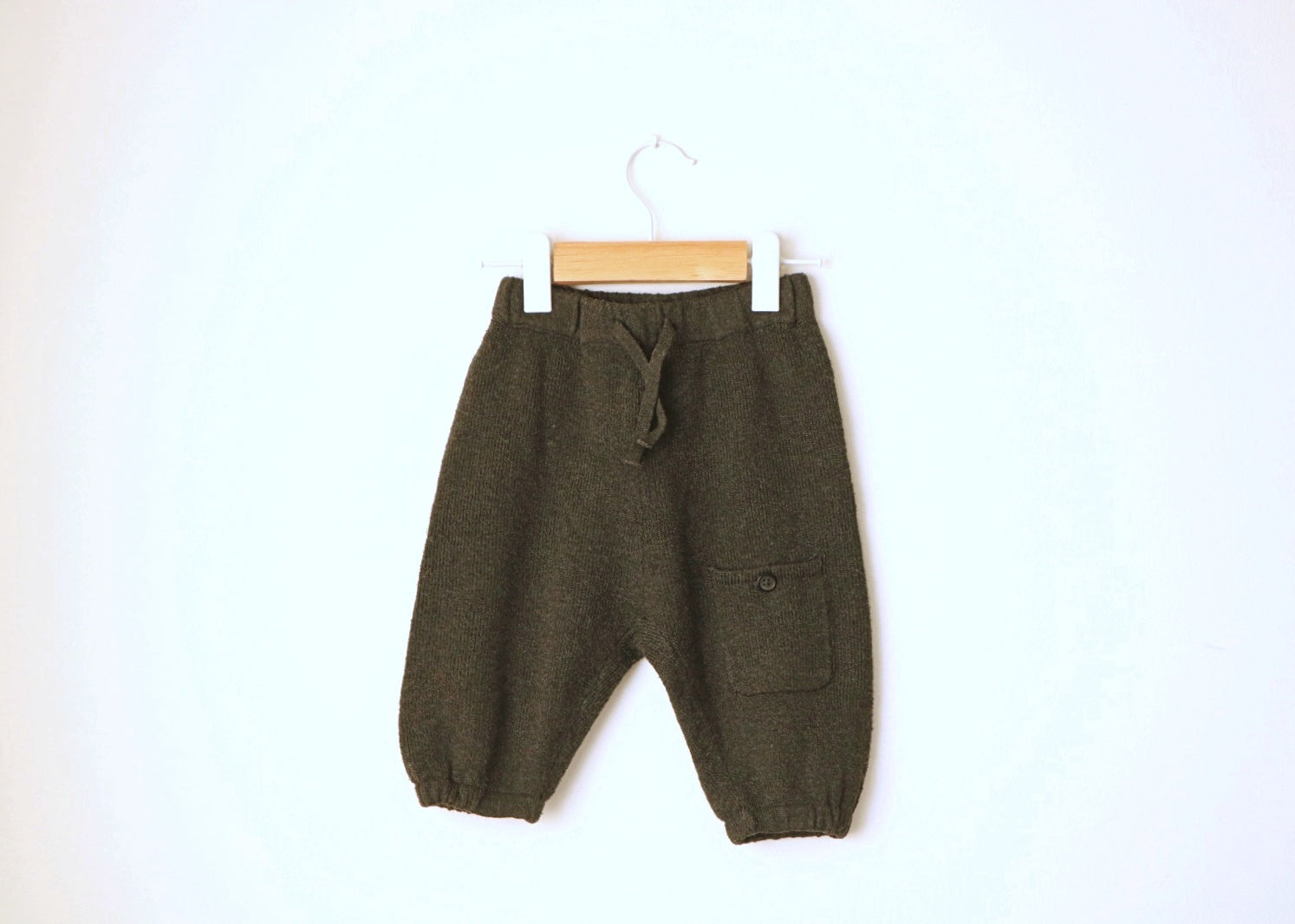 Calças malha cinzentas escuras. Cintura elástica e com cordão decorativo no exterior Estilo Prático para o teu bebé de 6 - 9 meses (74cm) 👦🕶️