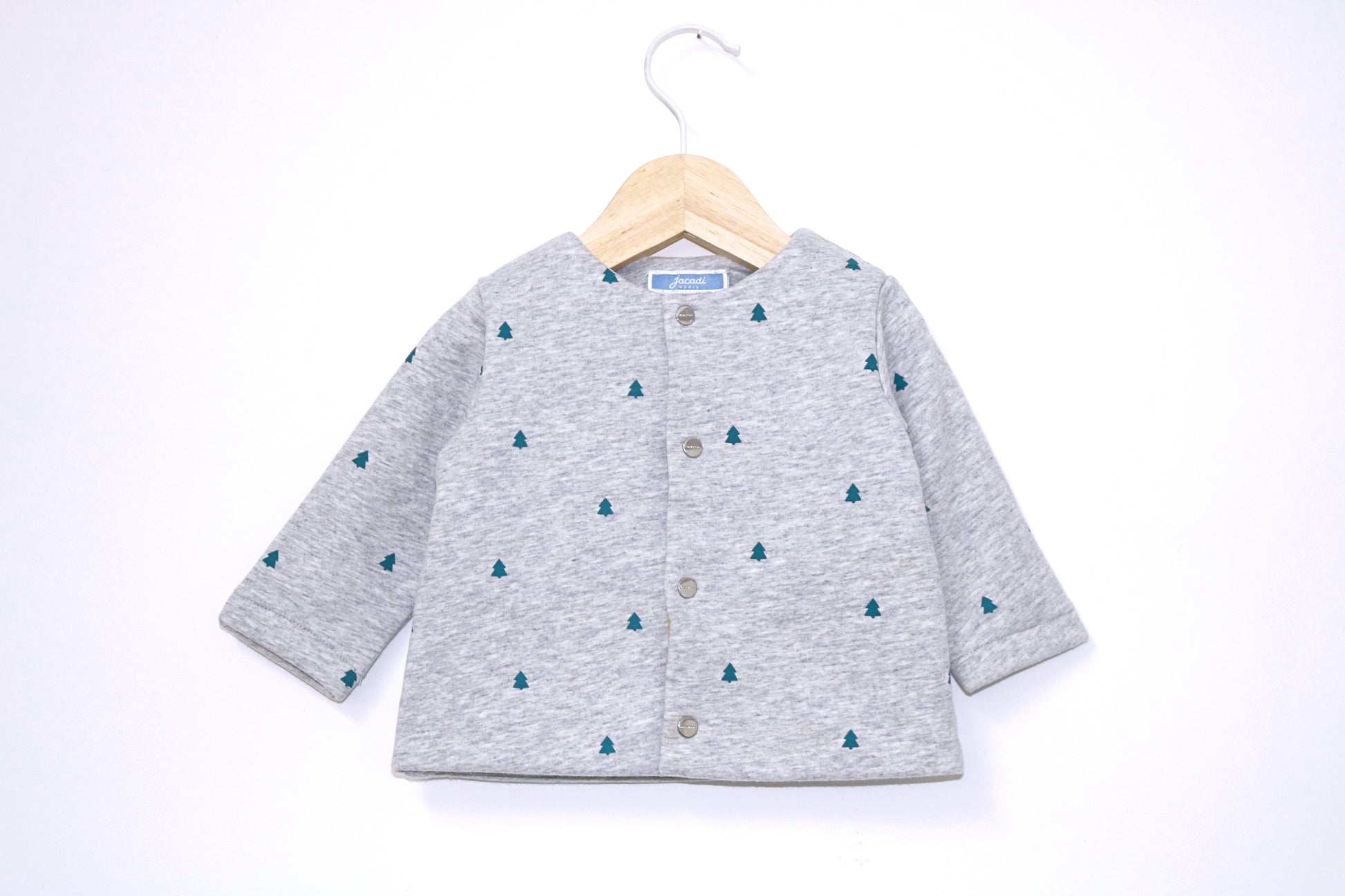 Camisola de Algodão Grossa cinzento com padrão pinheiros. Interior cardado para conforto térmico. Aperta com molas de pressão à frente. Estilo Natal para o teu bebé de 3 - 6 meses (67cm) 👦🕶️