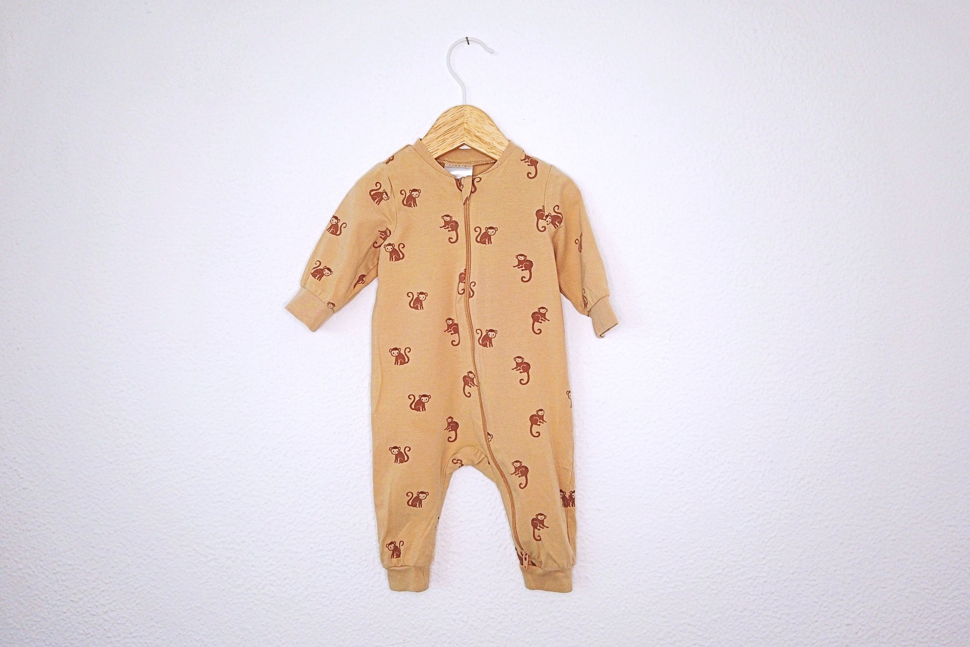 Babygrow s/pés bege alaranjado. Aperta à frente com fecho de correr. Estilo Prático para o teu bebé de 0/1 meses (56cm) 👦🕶️