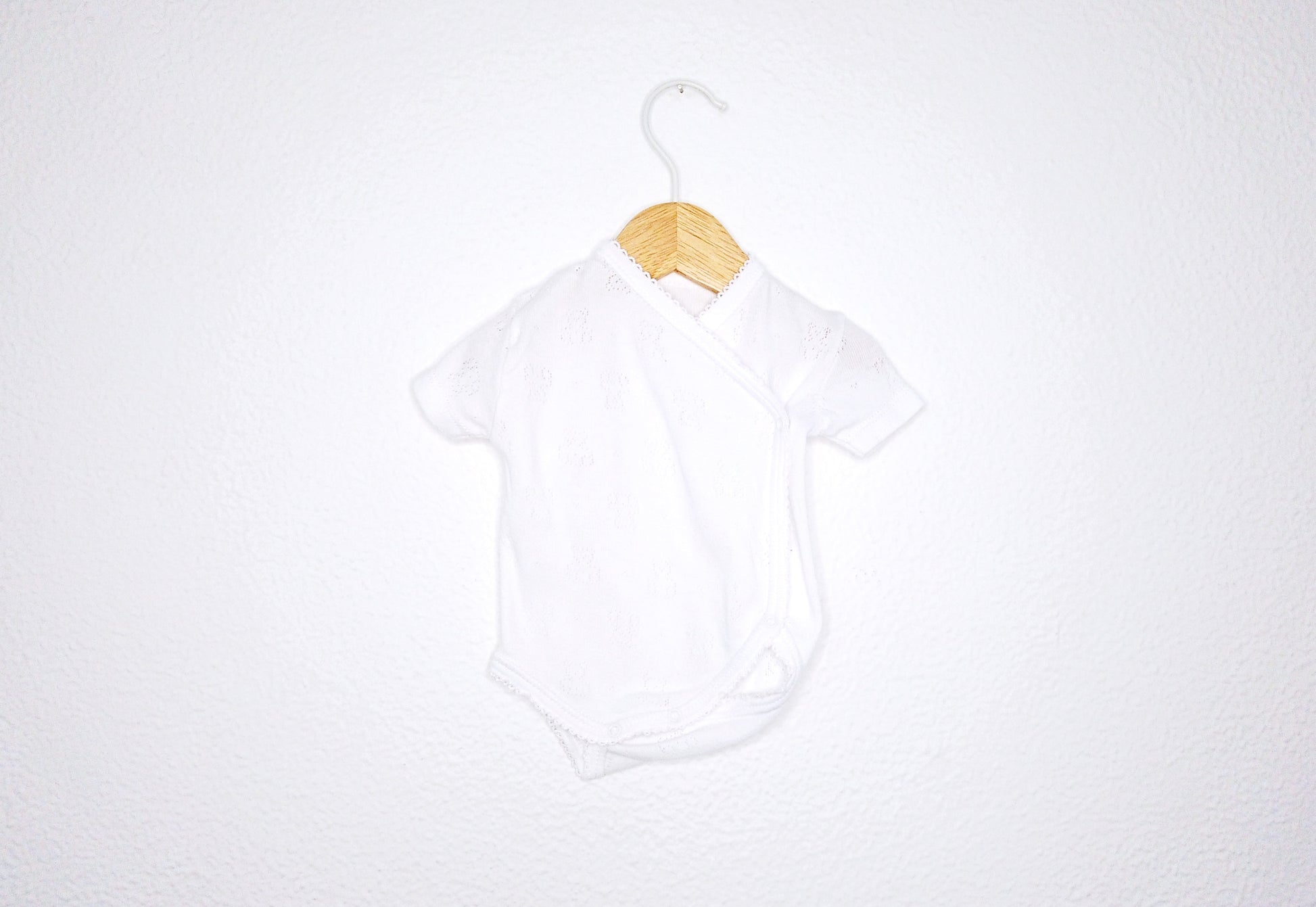 Body manga curta branco. Cruzado de manga curta. Aperta com molas de pressão em trespasse nas laterais e no entrepernas para vestir facilmente. Estilo Prático para o teu bebé de 0 meses (54cm) 👦🕶️