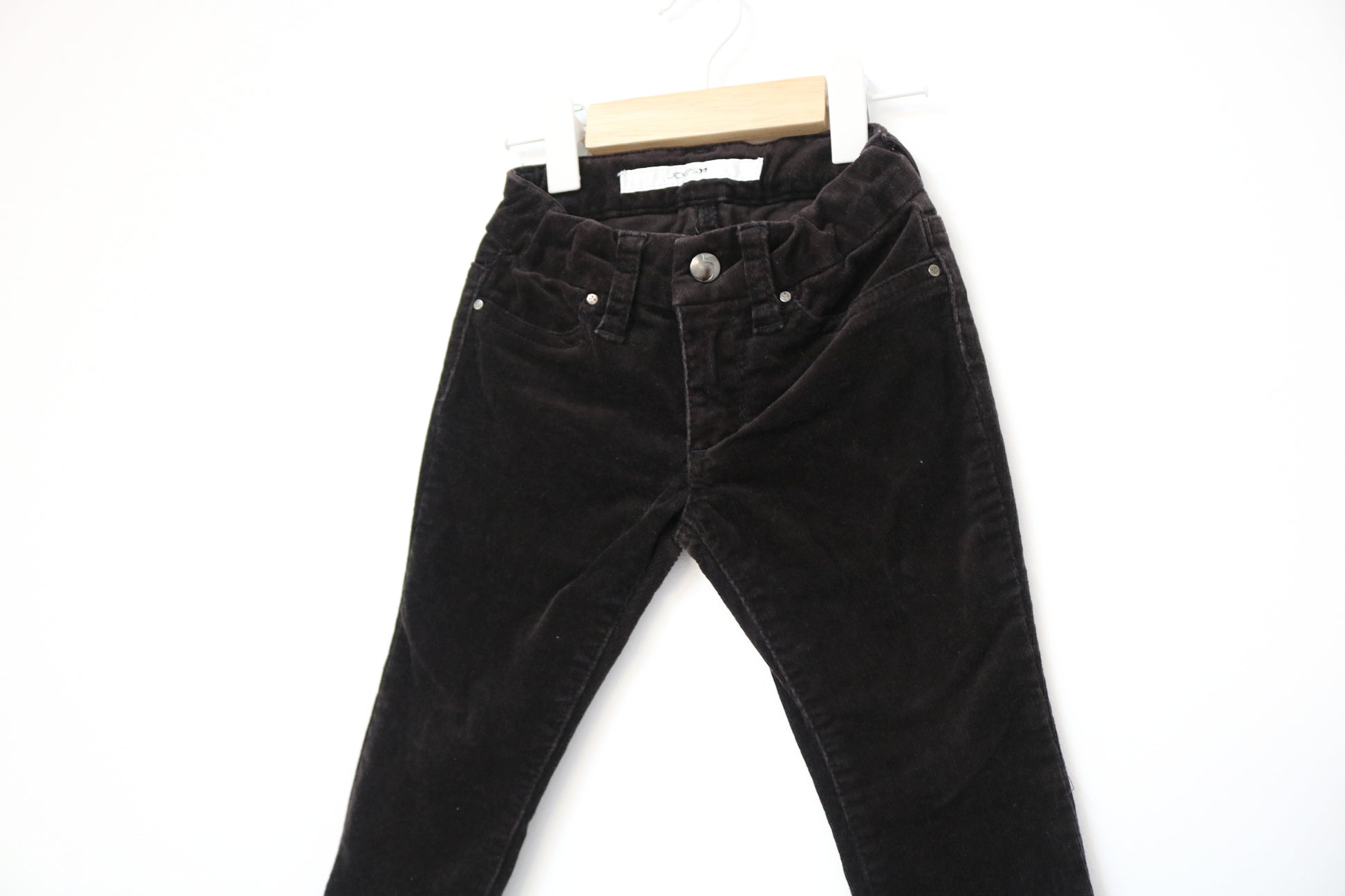 Calças Bombazine pretas. Bombazine de mistura de algodão com um toque de elastano para maior conforto e liberdade de movimentos. Cintura com elásticos interiores ajustáveis. Estilo Clássico / Formal para o teu bebé de 12 - 18 meses 👦🕶️