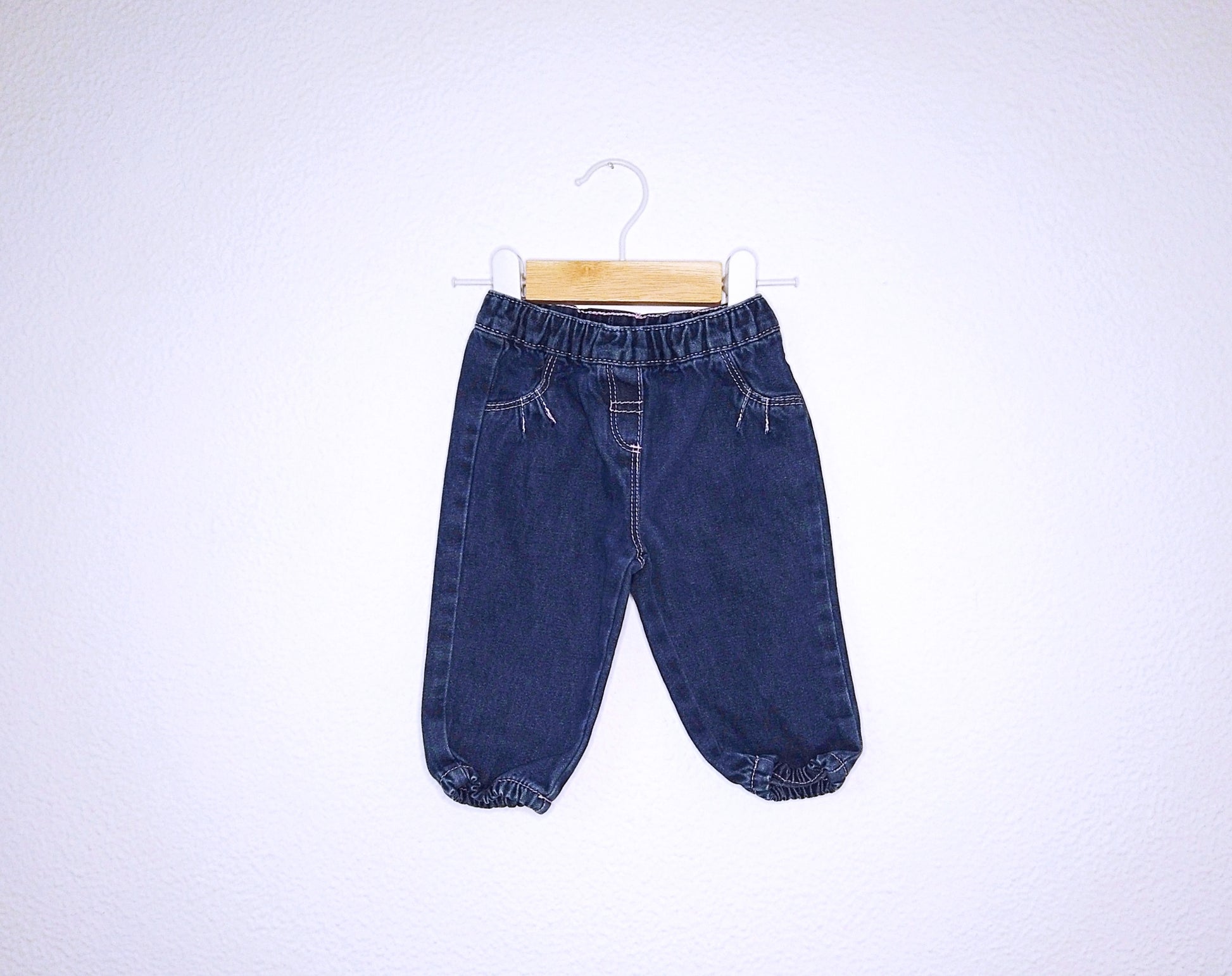Calças de ganga (jeans) azul-escuras. Cintura elástica. Estilo Prático para o teu bebé de 3 - 6 meses (68cm) 👦🕶️