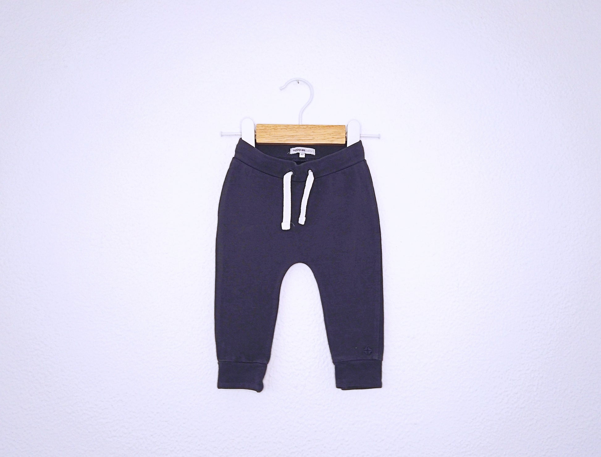 Calças moletão (fato treino) cinzento-escuras. Cintura elástica com cordão de ajuste. Estilo Prático para o teu bebé de 1 - 3 meses (62cm) 👦🕶️