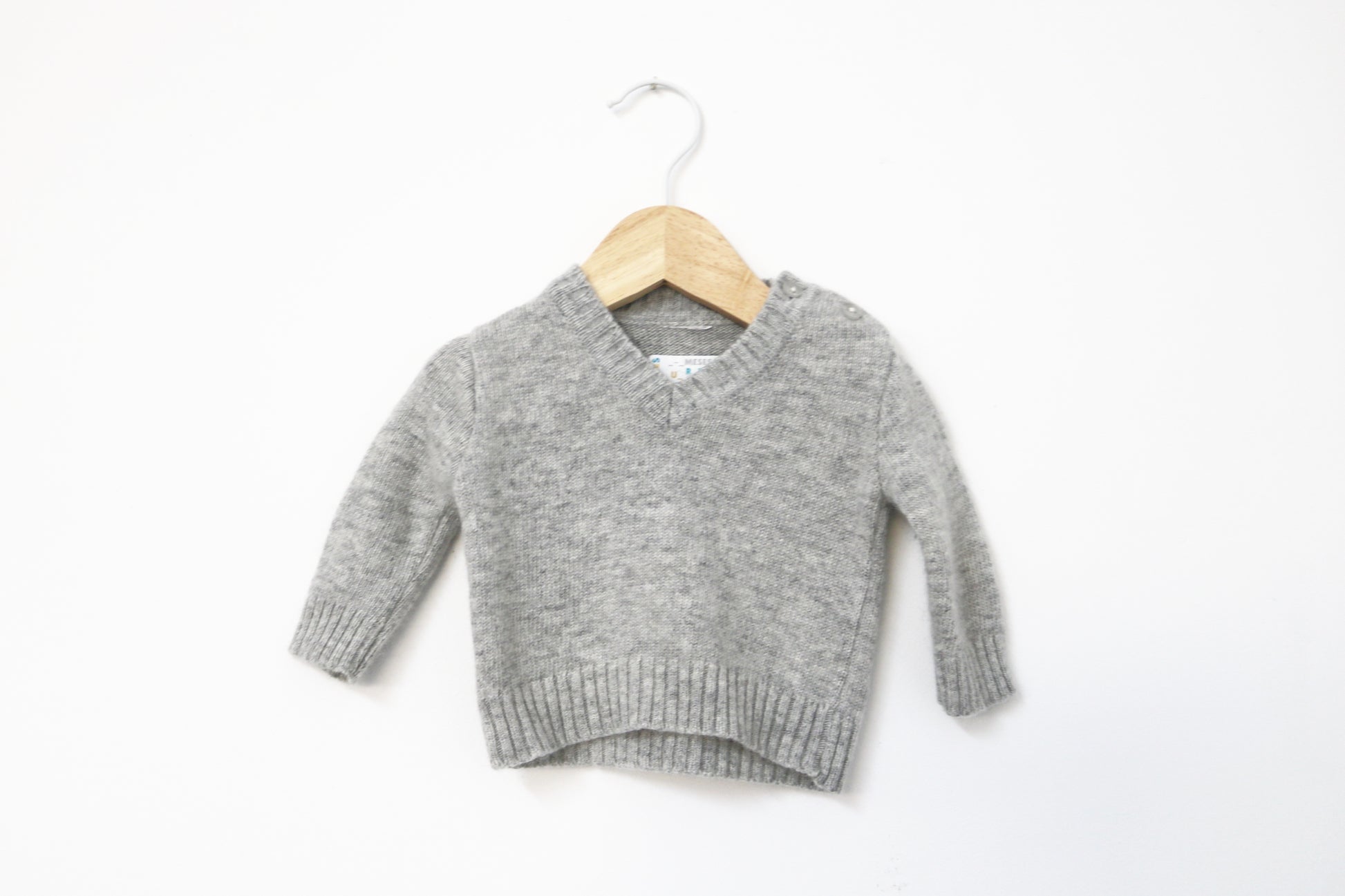 Camisola de Malha cinzenta-clara. A peça ideial para uma ocasião especial Aperta com botões à frente no ombro esquerdo. Estilo Clássico / Prático para o teu bebé de 1 - 3 meses 👦🕶️