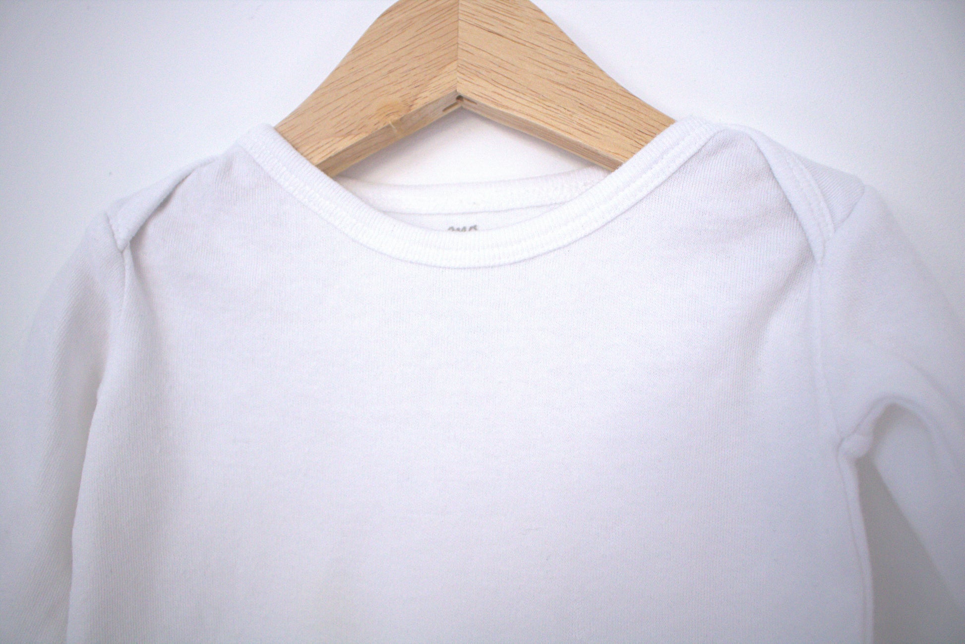 Body manga comprida branco. Manga comprida com os ombros trespassados. Aperta no entrepernas com molas de pressão para vestir facilmente. Estilo Prático para o teu bebé de 3 - 6 meses (61-68cm) 👦🕶️
