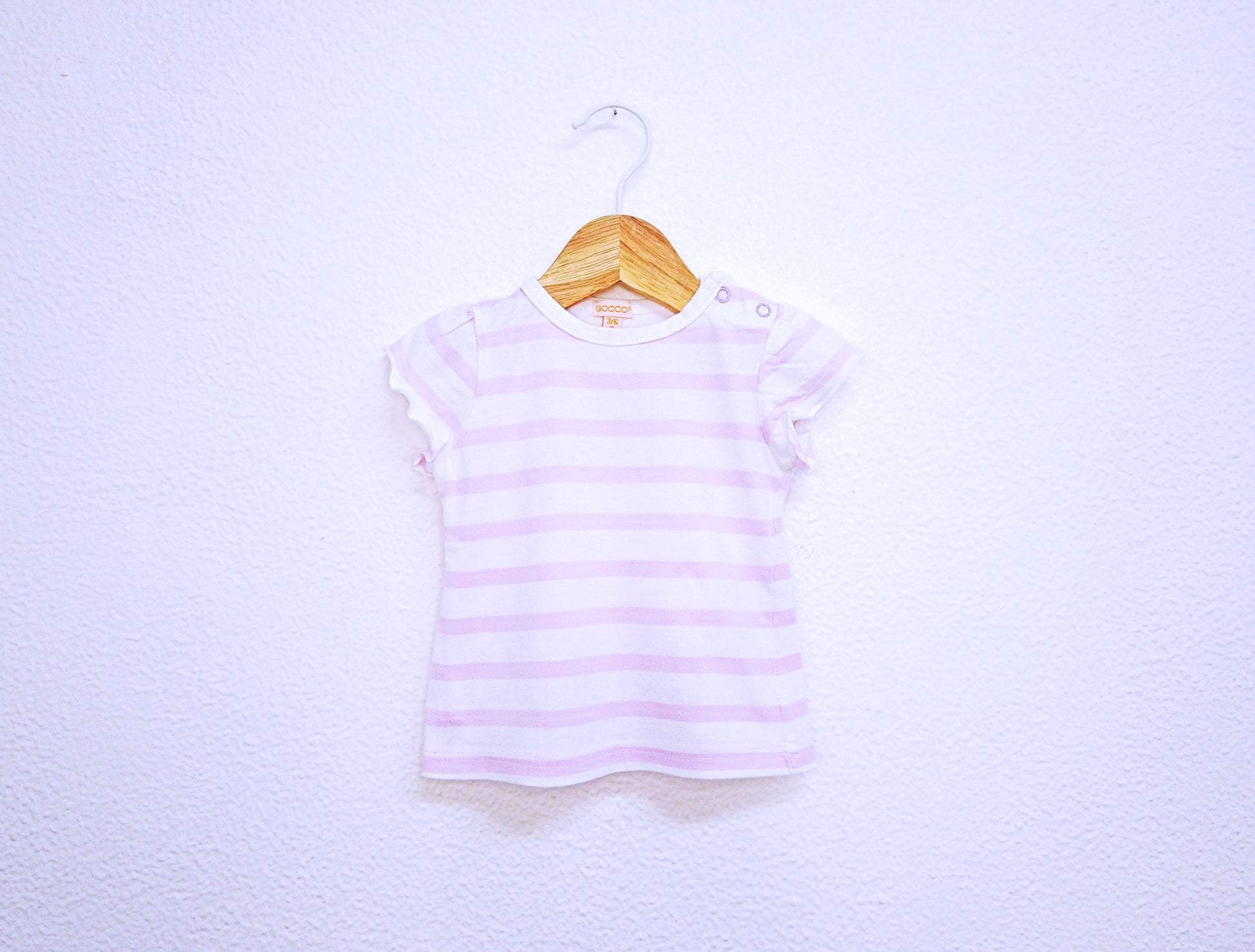 T-shirt rosa, branca às riscas. Estilo Prático para o teu bebé de 3 - 6 meses 👦🕶️