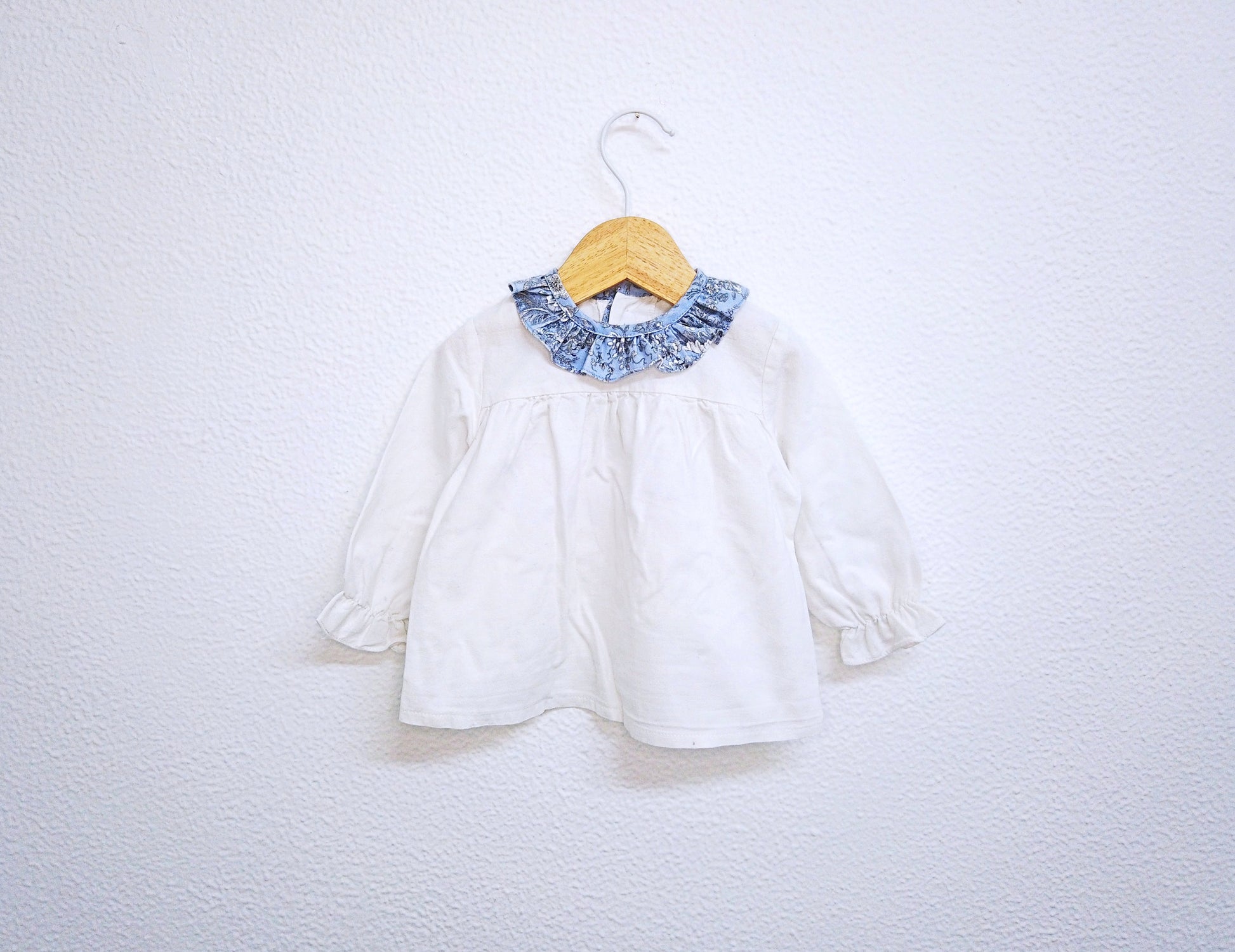 Blusa branca com gola florida. Gola de folhos. Aperta com botões atrás. Estilo Clássico / Prático para o teu bebé de 3 - 6 meses 👦🕶️