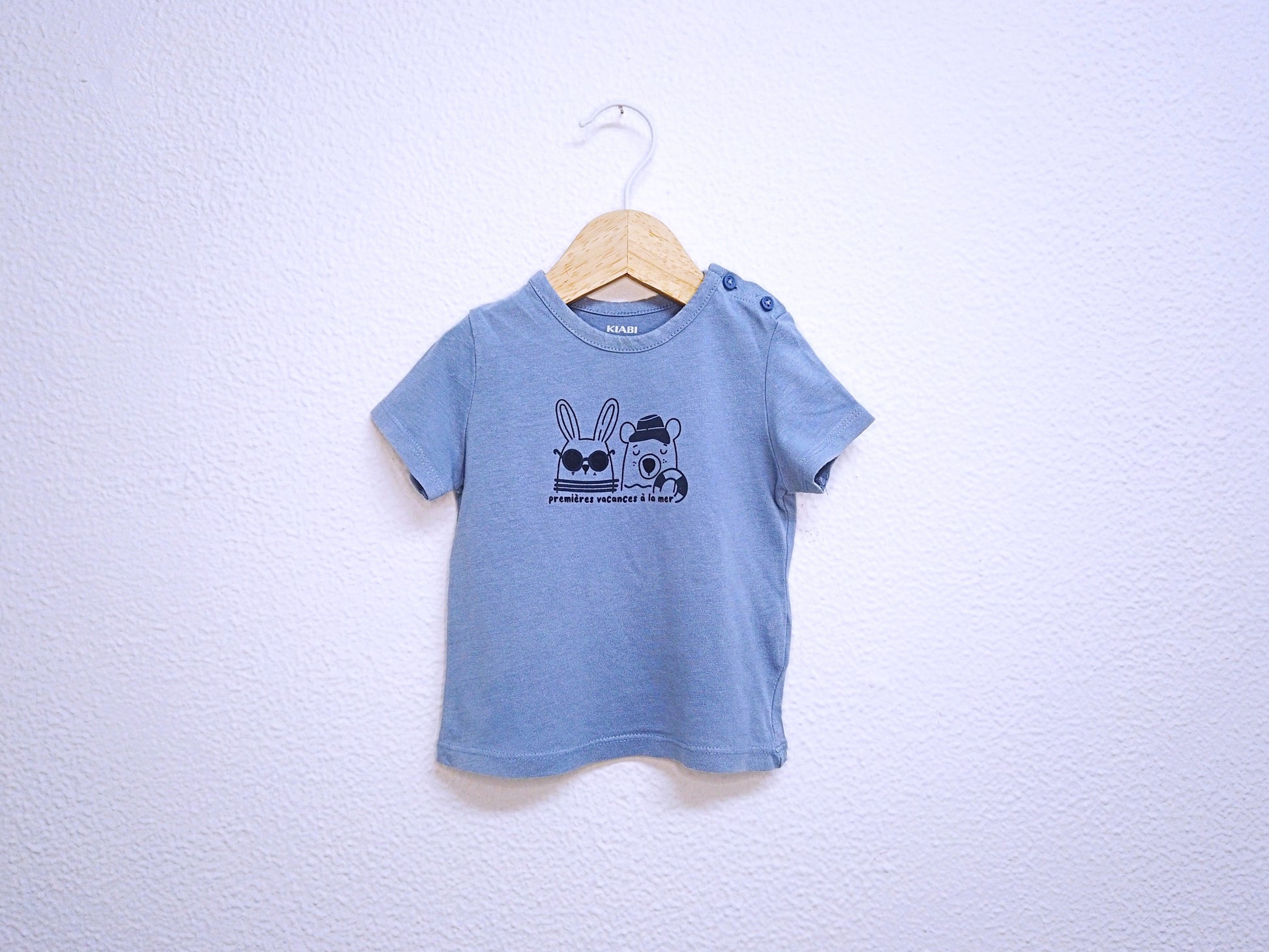 T-shirt azul seco com frase. Estilo Prático para o teu bebé de 3 - 6 meses (67cm) 👦🕶️