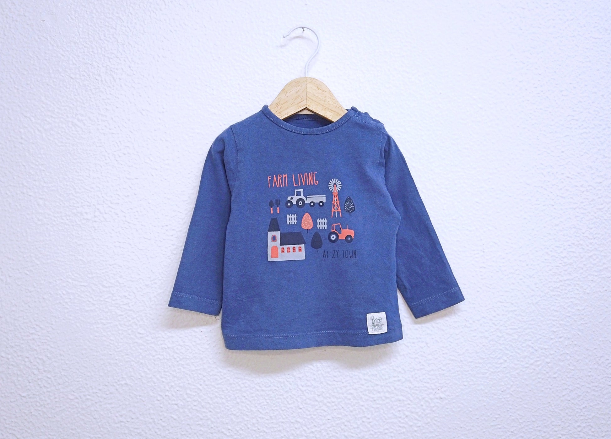 Camisola de Algodão Fina azul seco com frase. Estilo Prático para o teu bebé de 6 - 9 meses (68-72cm) 👦🕶️