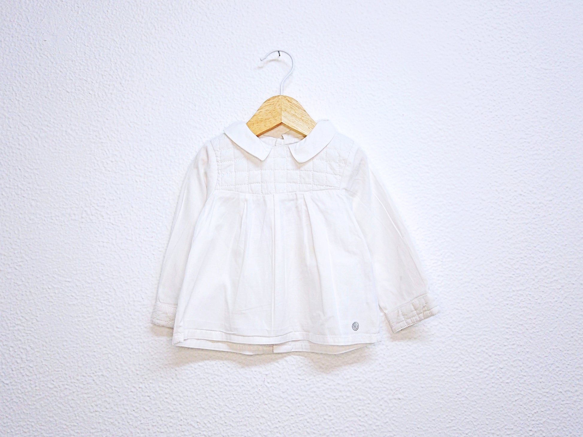 Blusa branca. Aperta com botões atrás. Estilo Prático para o teu bebé de 9 - 12 meses 👦🕶️