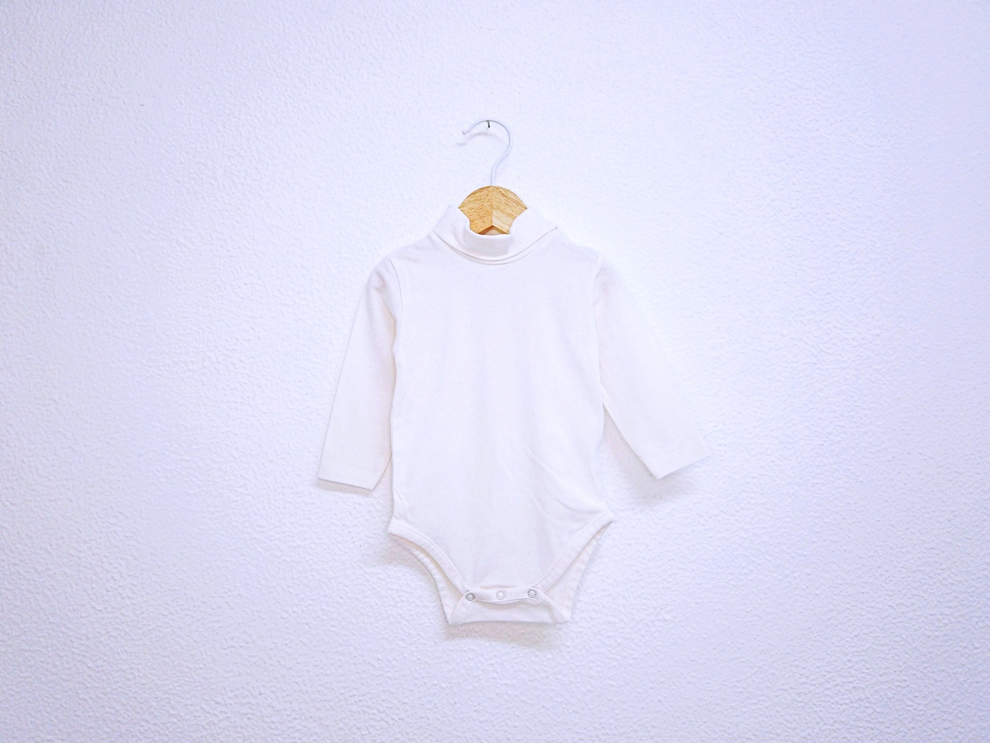 Body de gola alta branco. Aperta com botões de pressão na parte de trás e no entrepernas. Estilo Prático para o teu bebé de 6 - 9 meses (74cm) 👦🕶️
