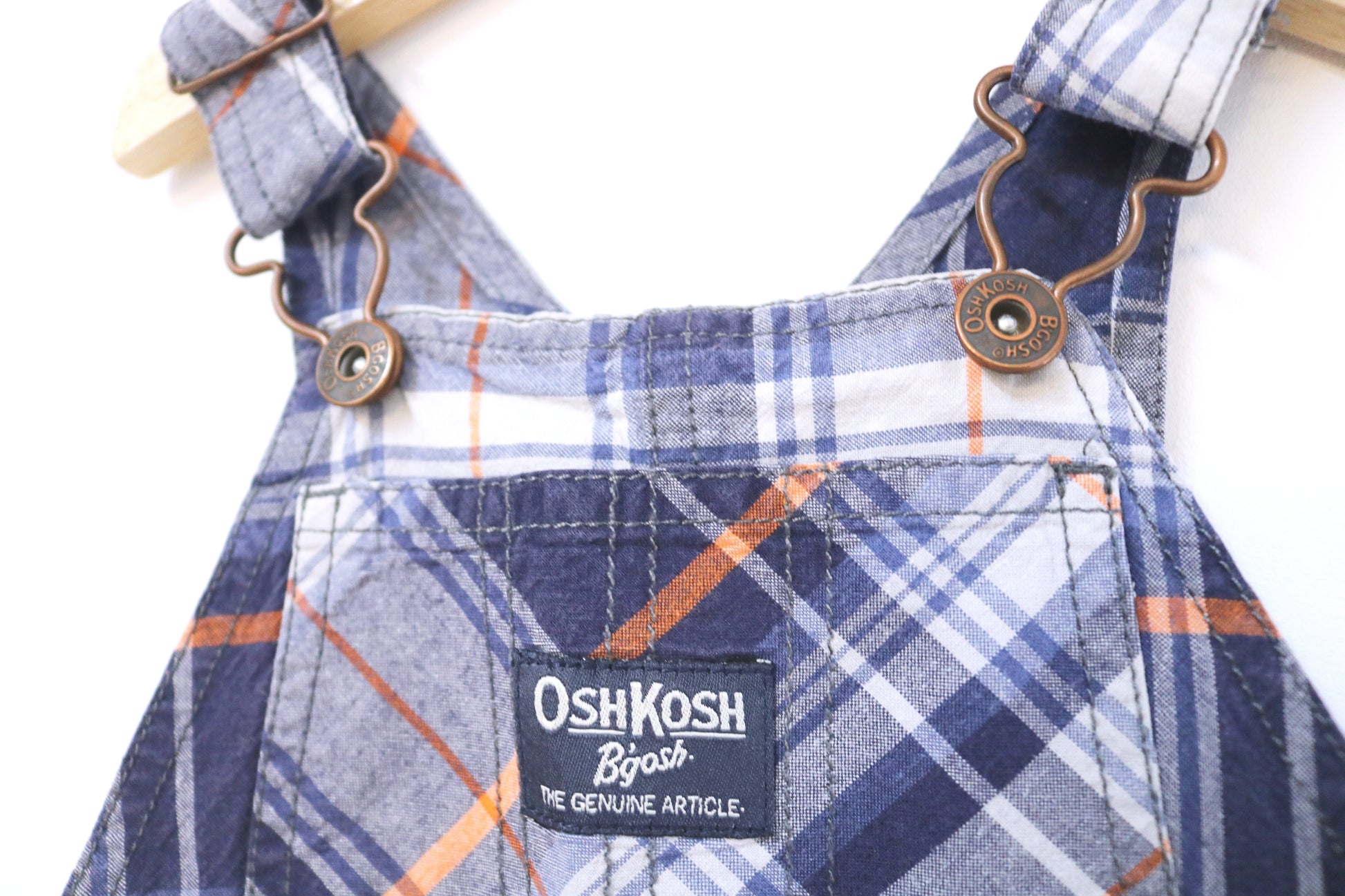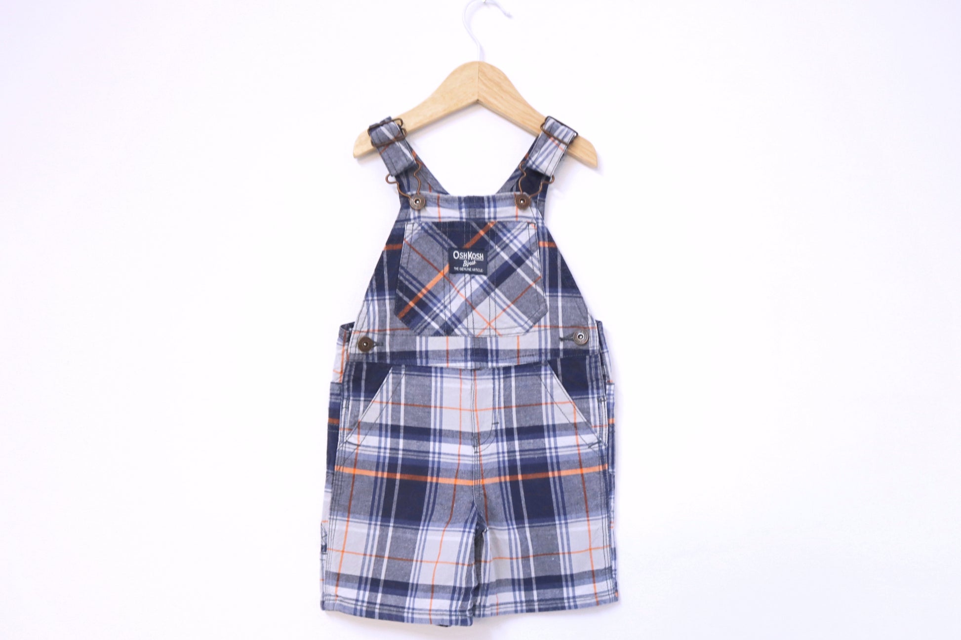 Dungarees/jumpers with dark blue, orange, white shorts with checkered pattern. Classic / Practical style for your baby aged 12 - 18 months 👦🕶️