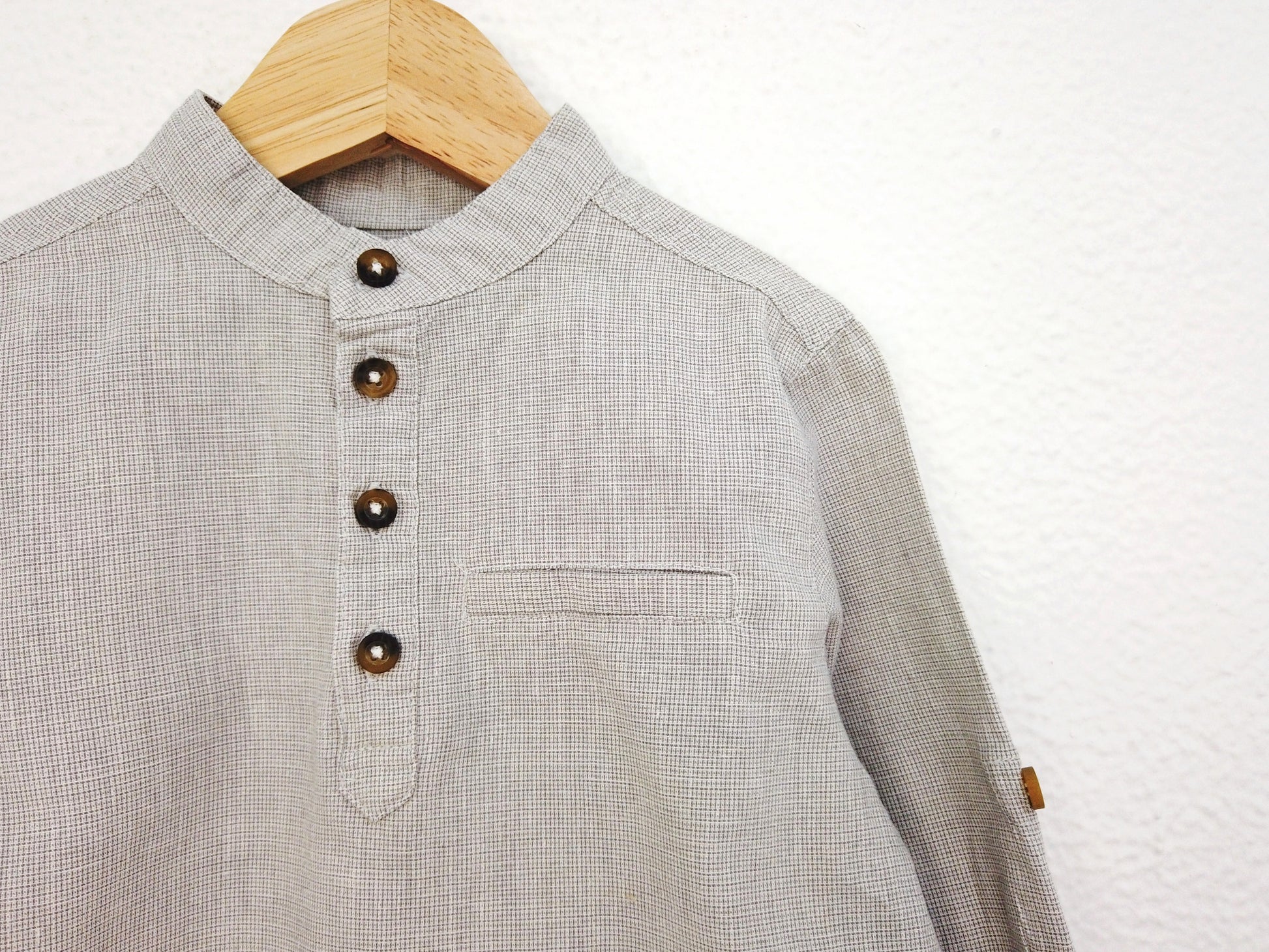 Camisa com padrão axadrezado em tons de branco, cinzento-claro. Estilo Clássico / Prático para o teu bebé de 12 - 18 meses (77-82cm) 👦🕶️