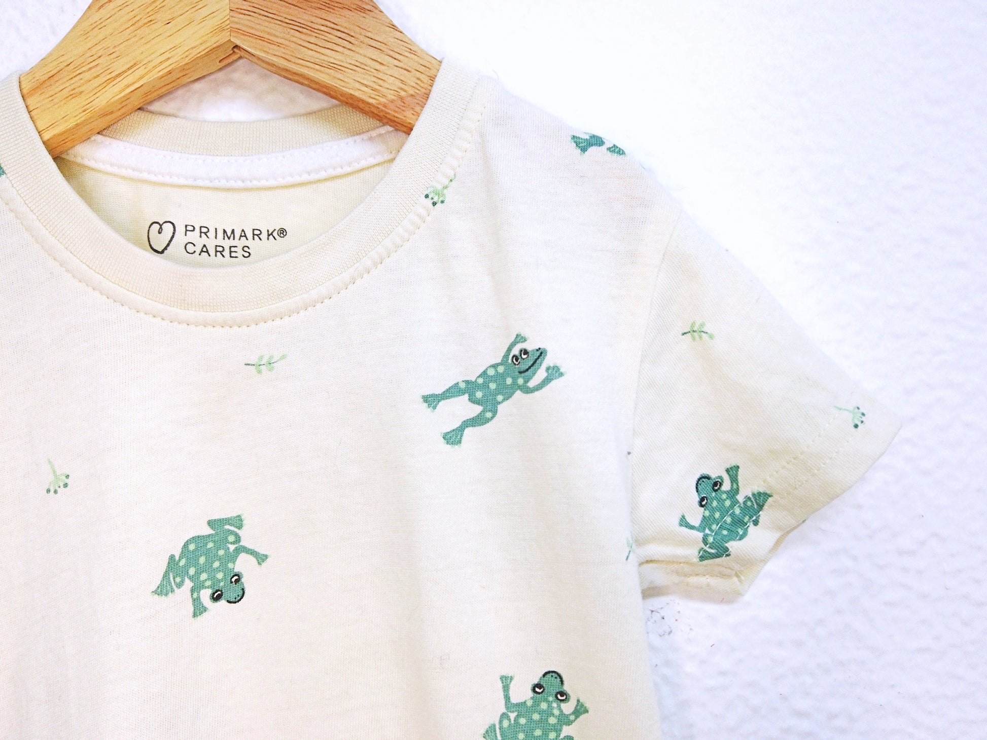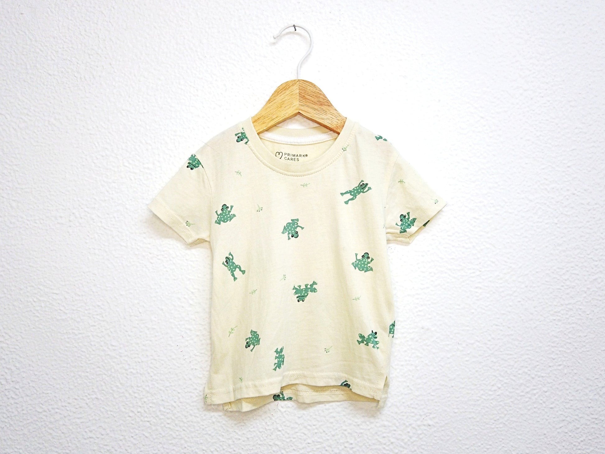 Camisola de Algodão Fina bege-clara com padrão de sapos. Um essencial no guarda-roupa de Verão Estilo Prático para o teu bebé de 9 - 12 meses (80cm) 👦🕶️