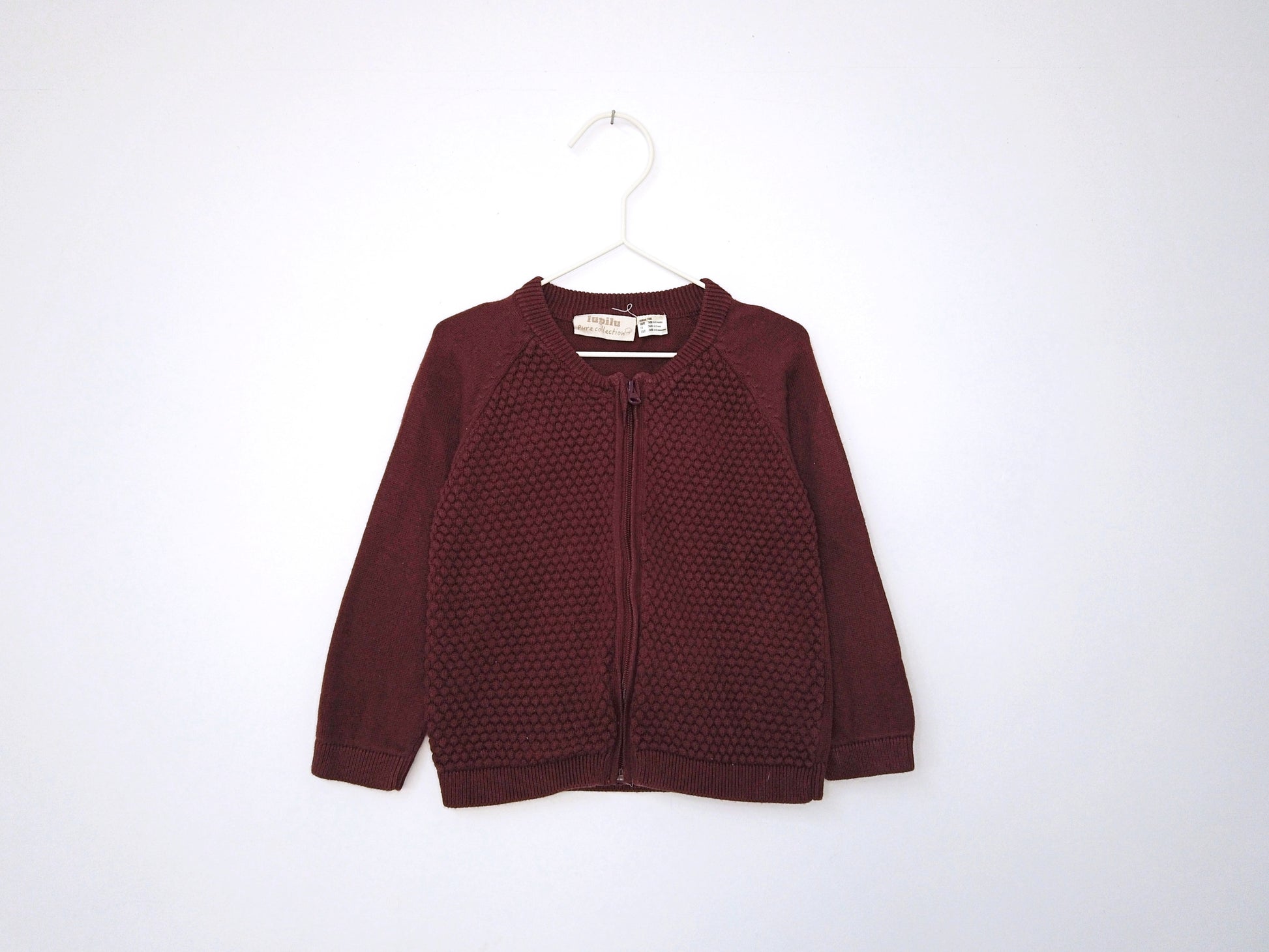 Casaco de malha bordeaux. Um essencial no guarda-roupa dos meninos. Aperta à frente com fecho de correr. Estilo Clássico / Prático para o teu bebé de 9 - 12 meses (74/80cm) 👦🕶️