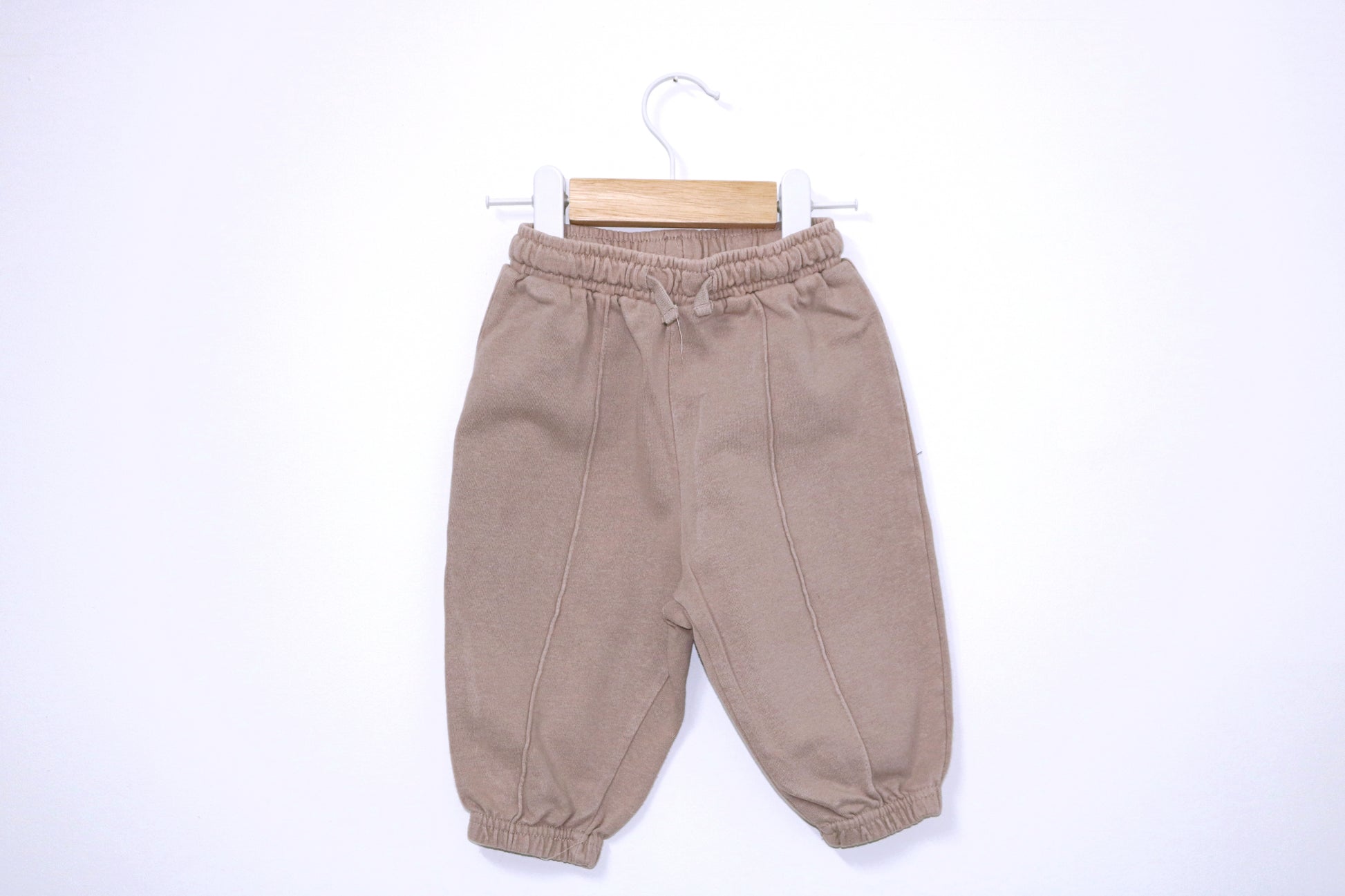 Calças moletão (fato treino) castanho-claras. Interior polar para dias mais frios. Cintura elástica com cordão de ajuste. Estilo Prático para o teu bebé de 6 - 9 meses (74cm) 👦🕶️
