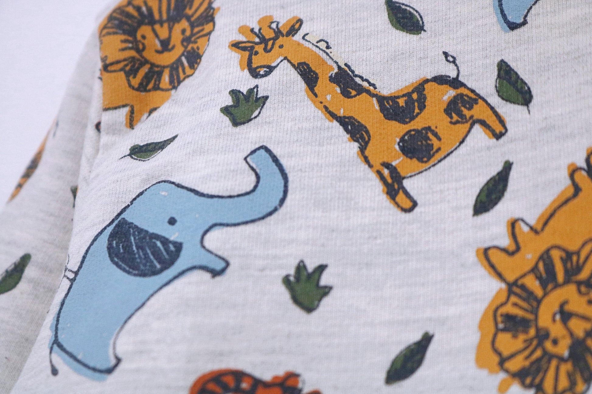 Camisola de Algodão Grossa cinzento-clara com padrão de animais. Extremidades caneladas para um ajuste perfeito. Estilo Prático para o teu bebé de 6 - 9 meses (68-72cm) 👦🕶️