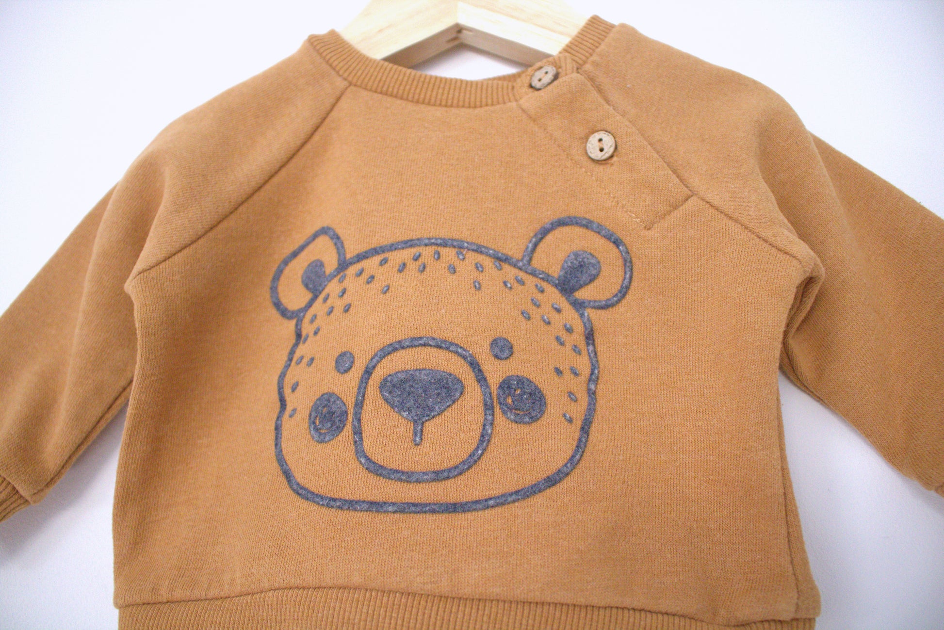 Sweat castanha. Interior térmico cardado para dias mais frios. Aperta com botões no ombro esquerdo para facilitar o vestir. Estilo Prático para o teu bebé de 0/1 meses (51-55cm) 👦🕶️