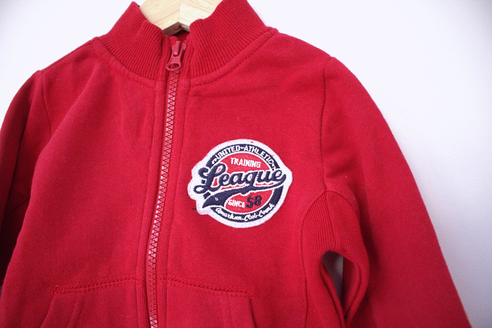 Casaco de algodão vermelho. Interior térmico cardado para dias mais frios. Aperta à frente com fecho de correr. Estilo Clássico / Prático para o teu bebé de 9 - 12 meses (74cm) 👦🕶️