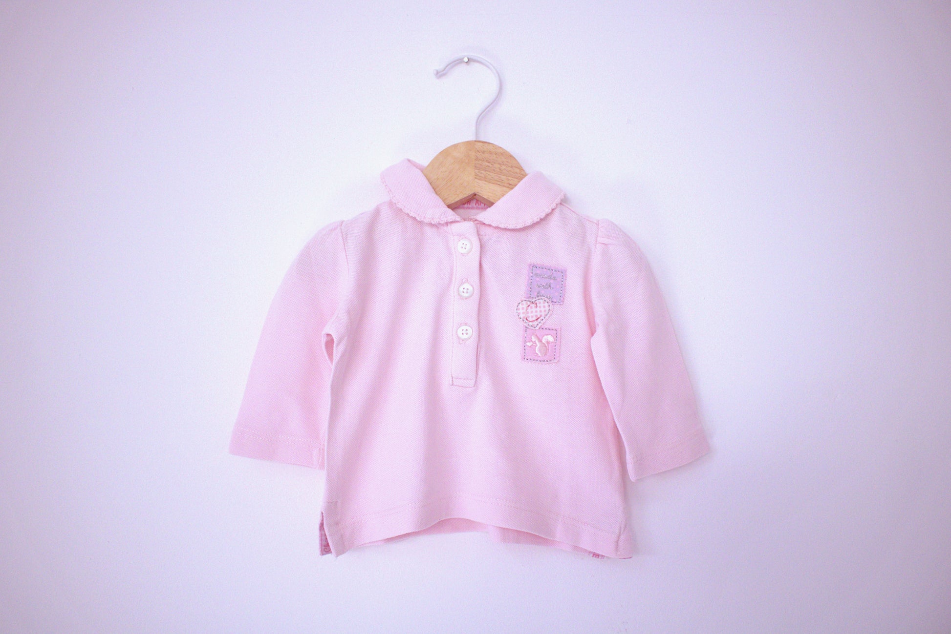 Camisola Polo rosa clara. Aperta à frente com botões em meia carcela. Estilo Clássico / Prático para o teu bebé de 0/1 meses (50cm) 👦🕶️