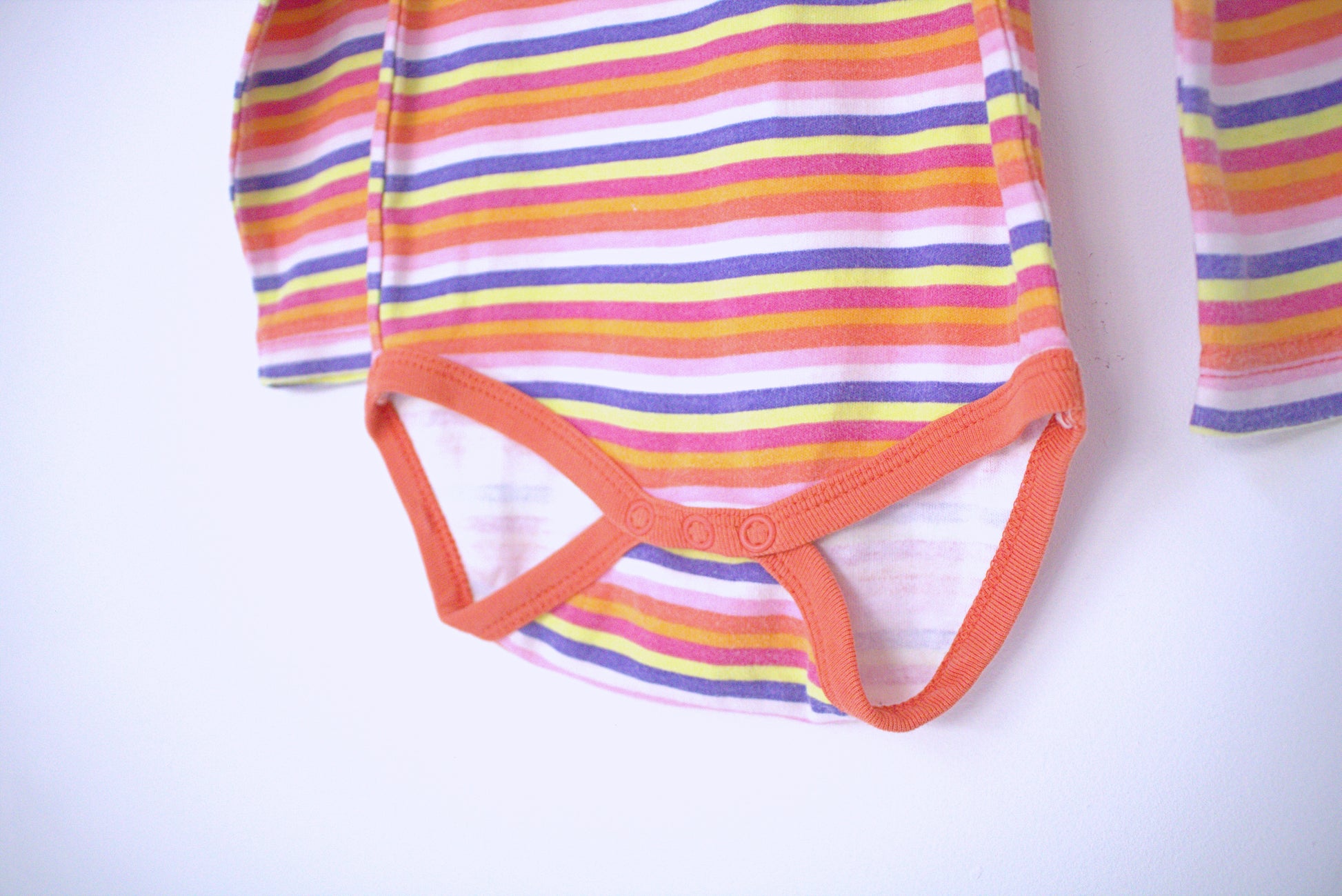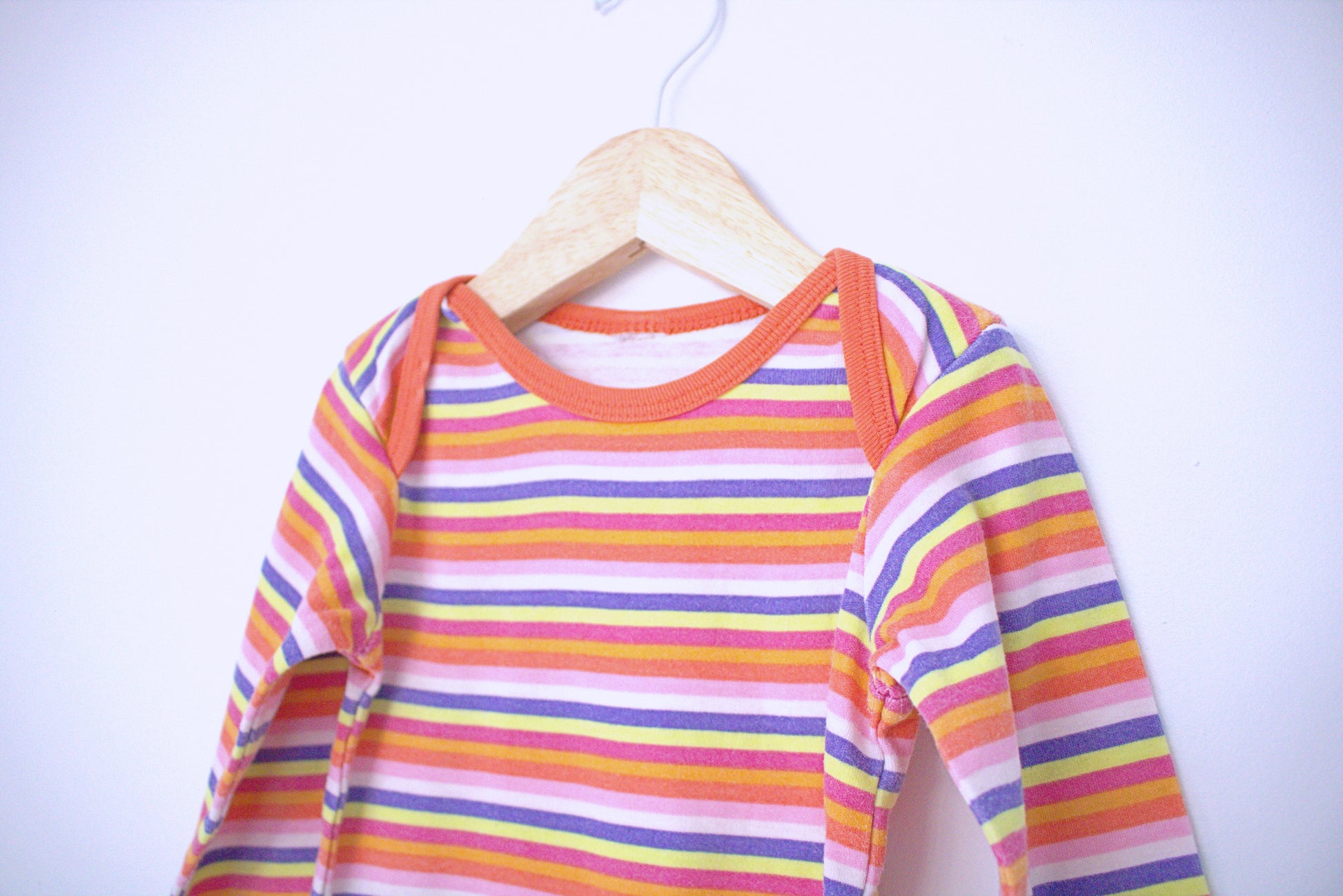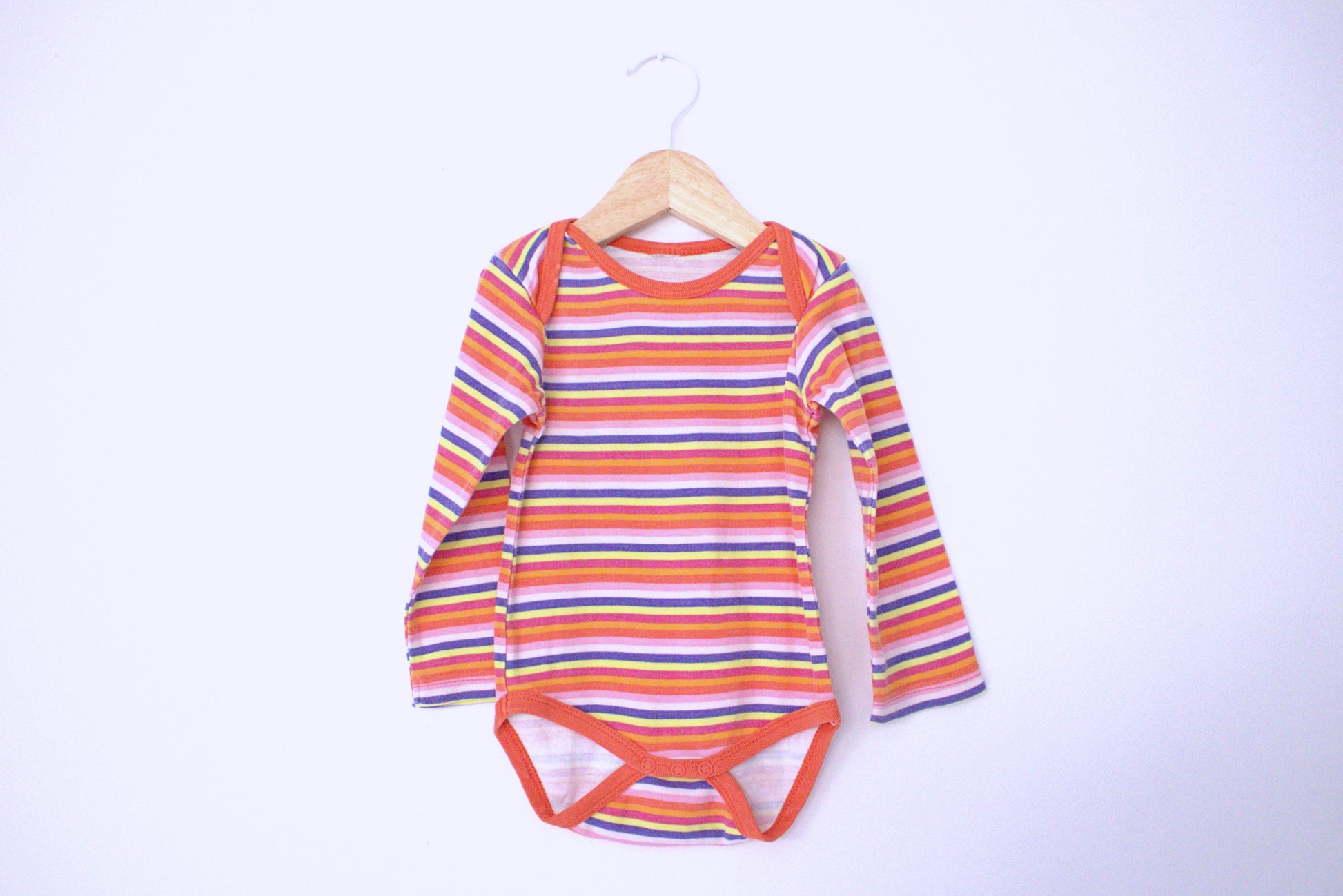 Body manga comprida laranja, rosa, branco, roxo às riscas. Estilo Prático para o teu bebé de 9 - 12 meses 👦🕶️