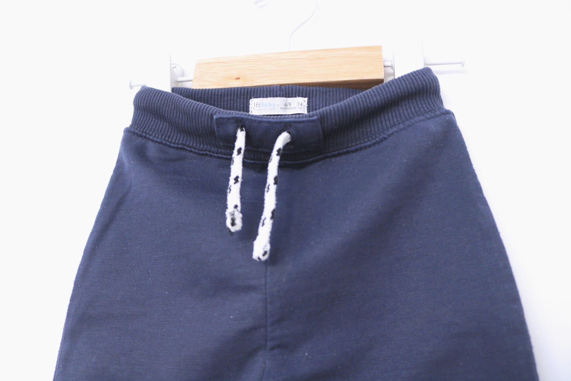 Calças moletão (fato treino) azuis. Cintura elástica com cordão de ajuste. Estilo Prático para o teu bebé de 6 - 9 meses (74cm) 👦🕶️