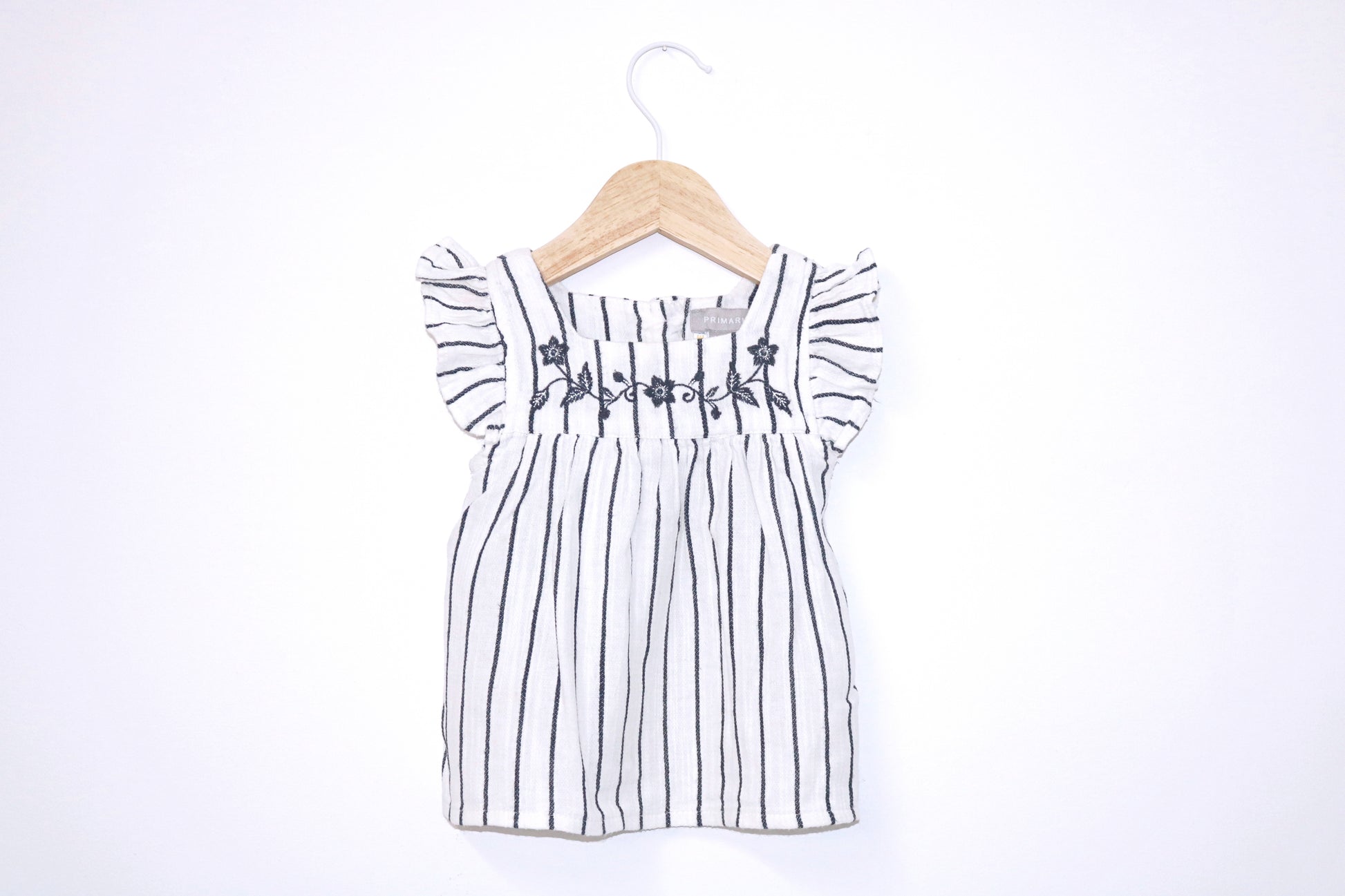 Blusa branca com padrão de riscas com flores. Estilo Clássico / Prático para o teu bebé de 9 - 12 meses (80cm) 👦🕶️