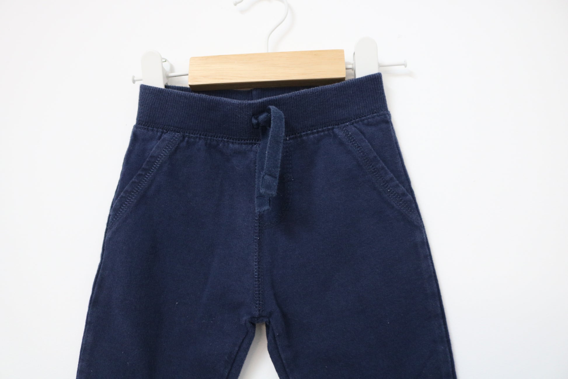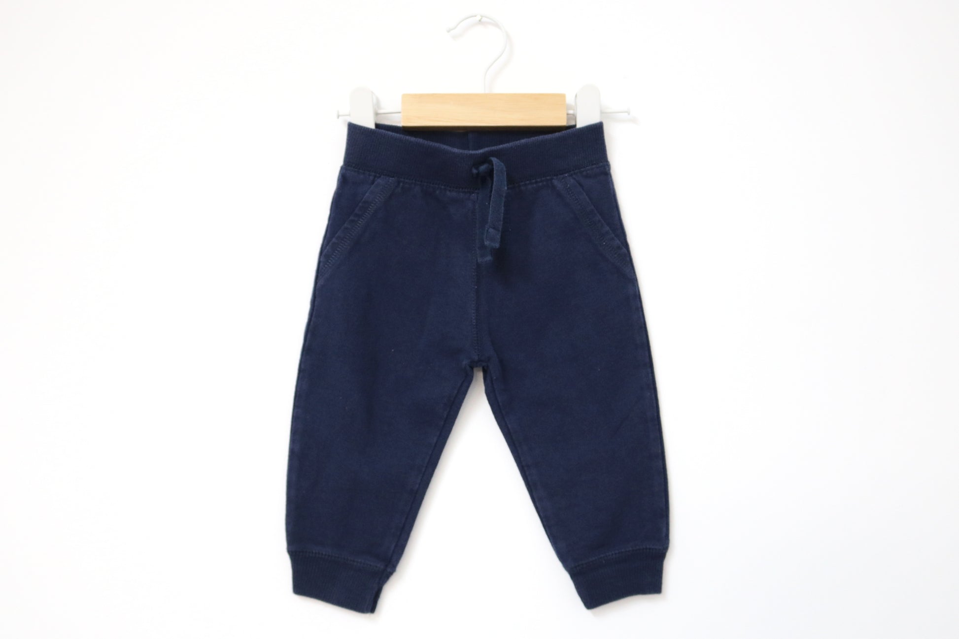 Calças moletão (fato treino) azul-escuras. Cintura elástica com cordão de ajuste. Estilo Prático para o teu bebé de 6 - 9 meses 👦🕶️