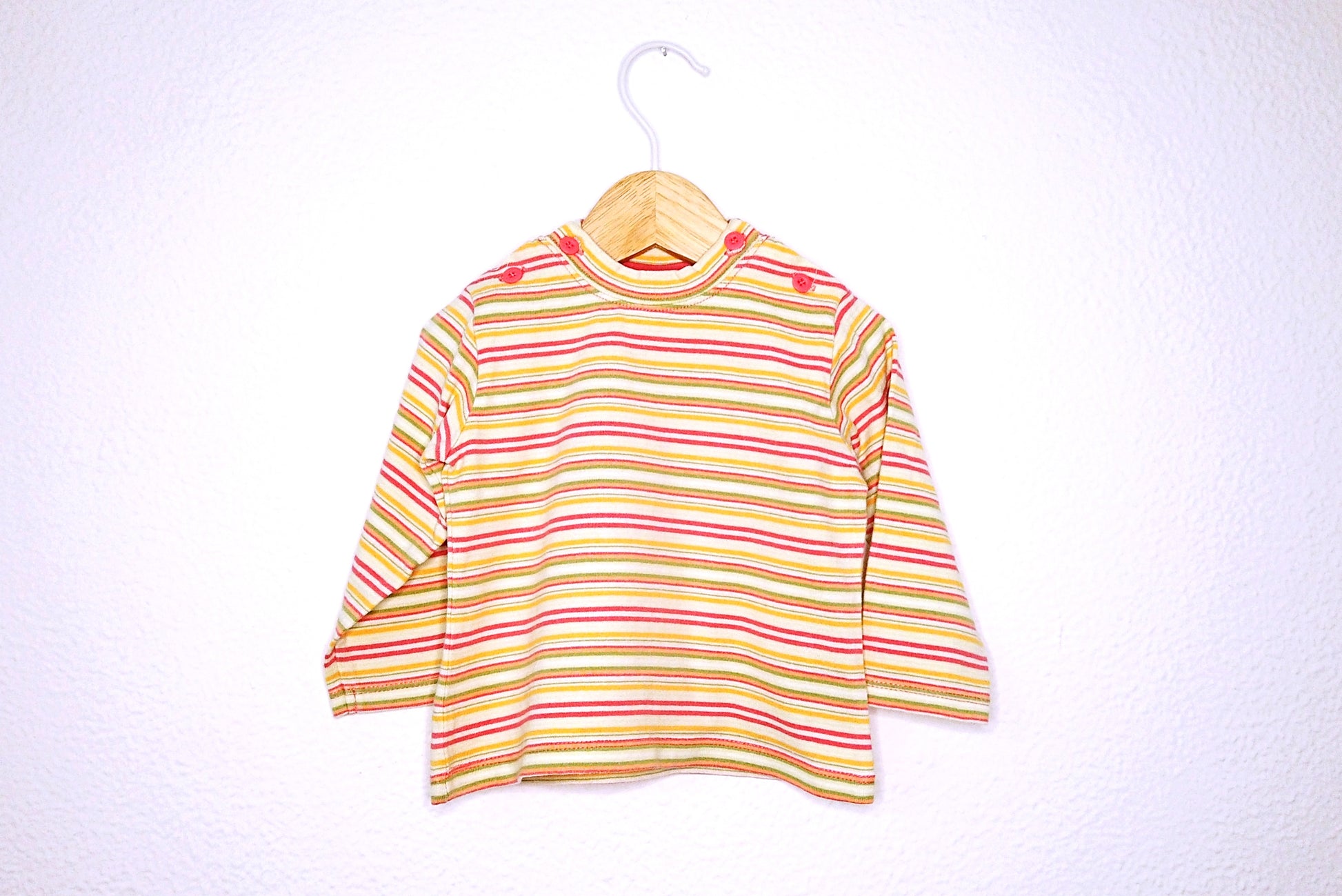 Camisola de Algodão Fina amarela, rosa, verde, laranja, amarelo às riscas. Estilo Prático para o teu bebé de 3 - 6 meses (62-68cm) 👦🕶️