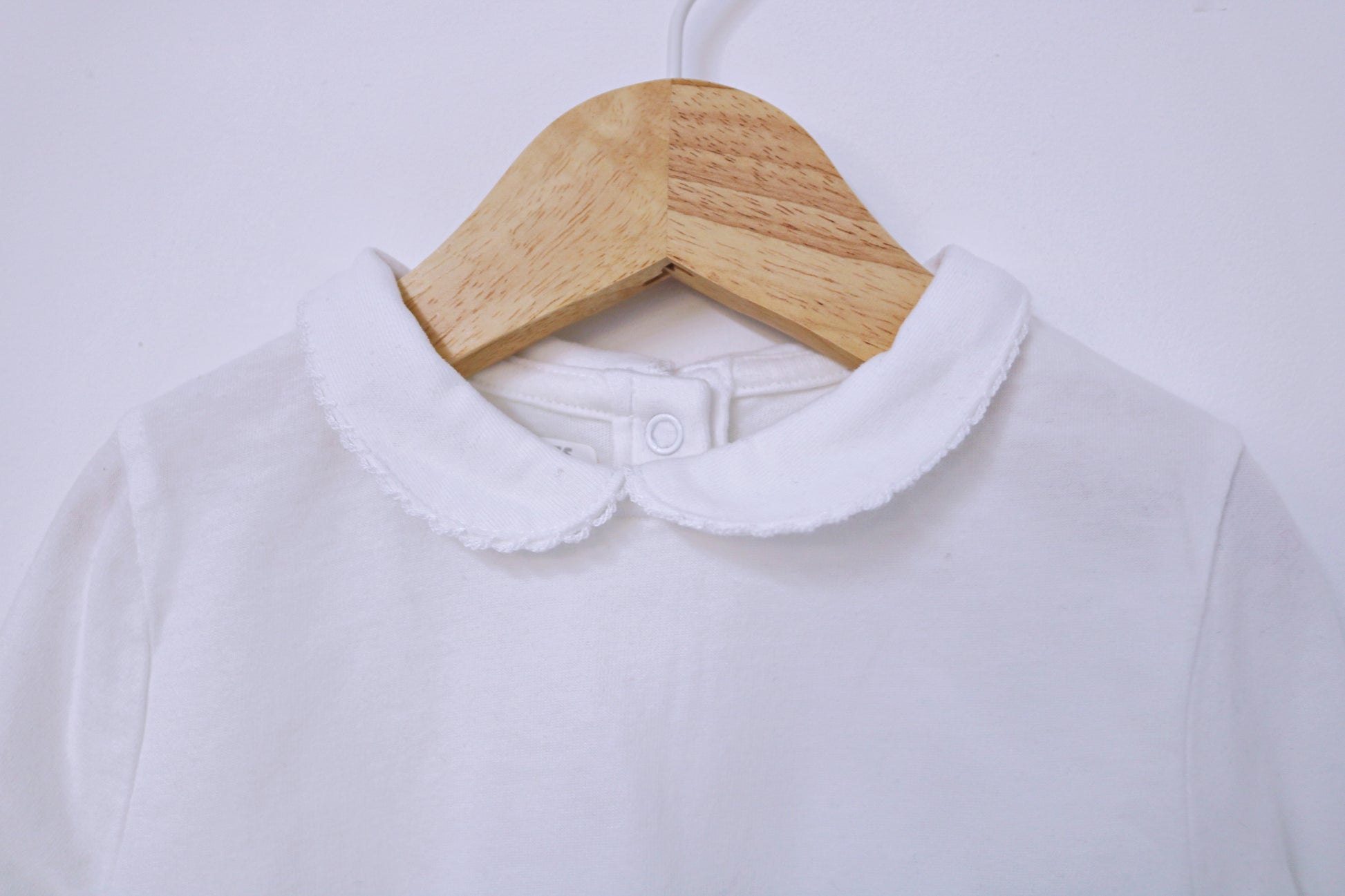 Body com gola manga comprida branco. Gola colegial. Aperta com botões de pressão na parte de trás e no entrepernas. Estilo Clássico / Prático para o teu bebé de 9 - 12 meses (72-76cm) 👦🕶️