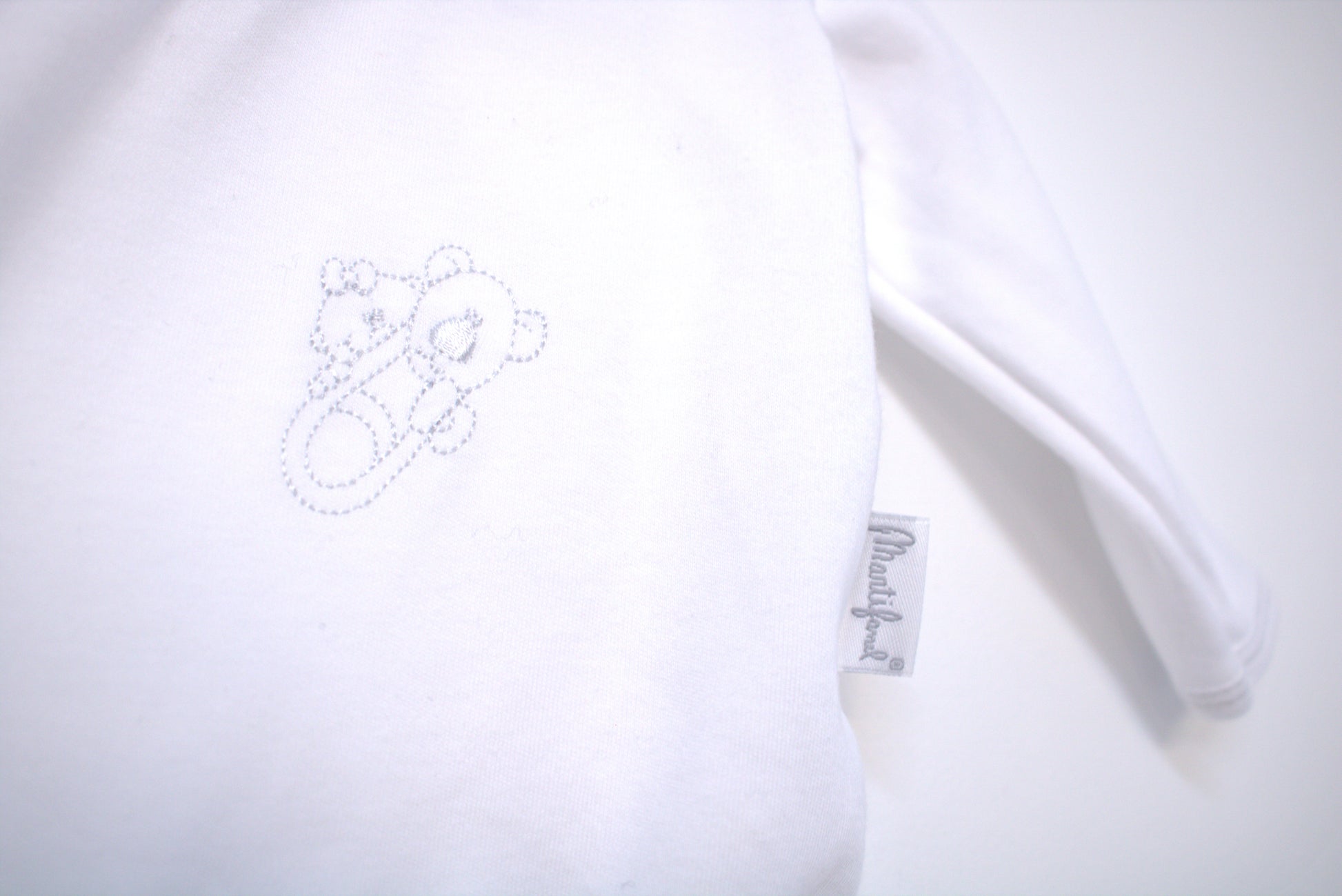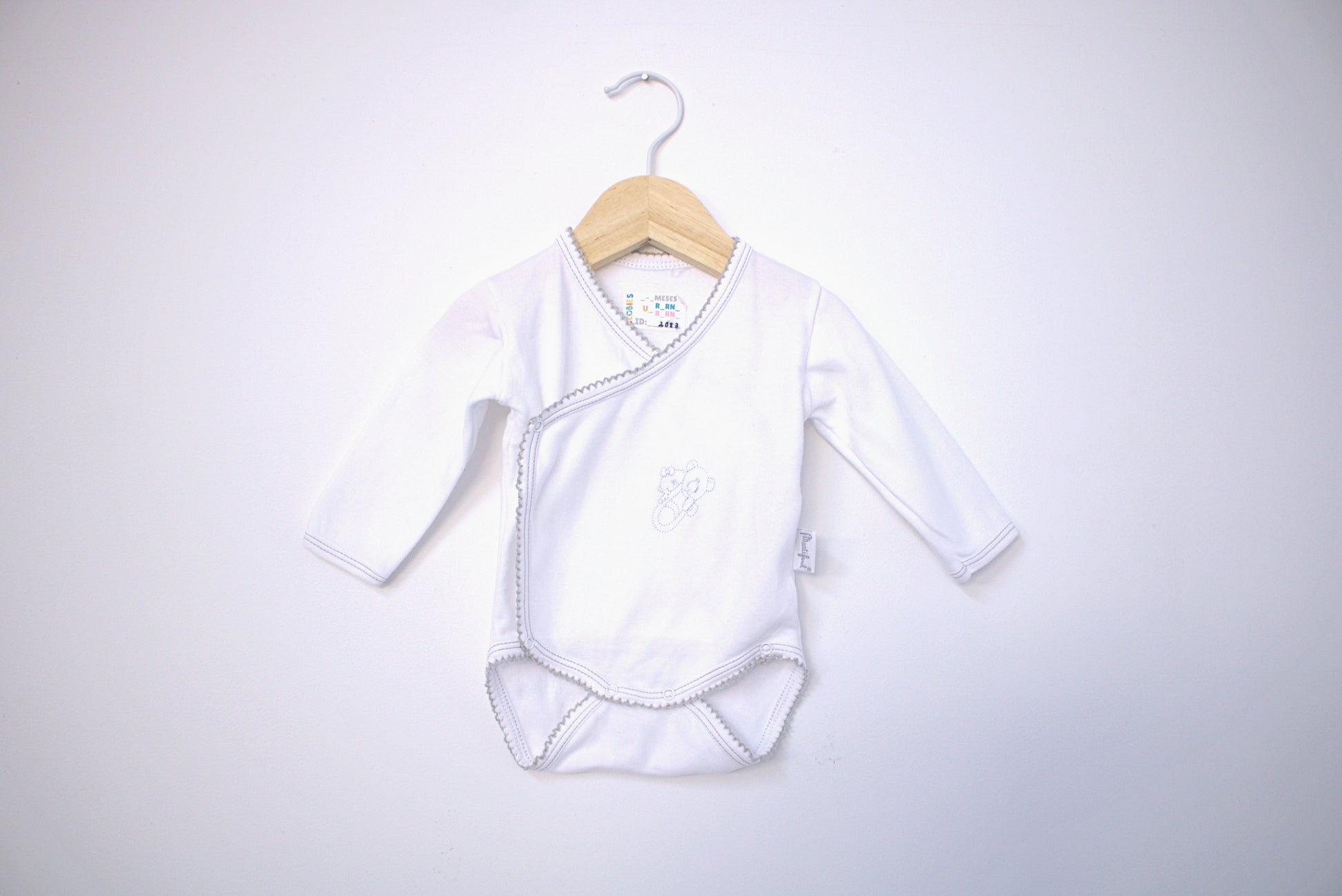 Body manga comprida branco. Interior térmico cardado para dias mais frios. Cruzado de manga comprida. Aperta com molas de pressão em trespasse nas laterais e no entrepernas para vestir facilmente. Estilo Prático para o teu bebé de 1 - 3 meses 👦🕶️