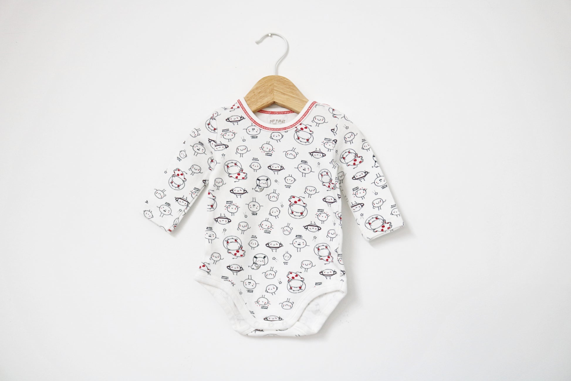 Body manga comprida vermelho. Aperta no entrepernas com molas de pressão para vestir facilmente. Estilo Prático para o teu bebé de 3 - 6 meses (62cm) 👦🕶️