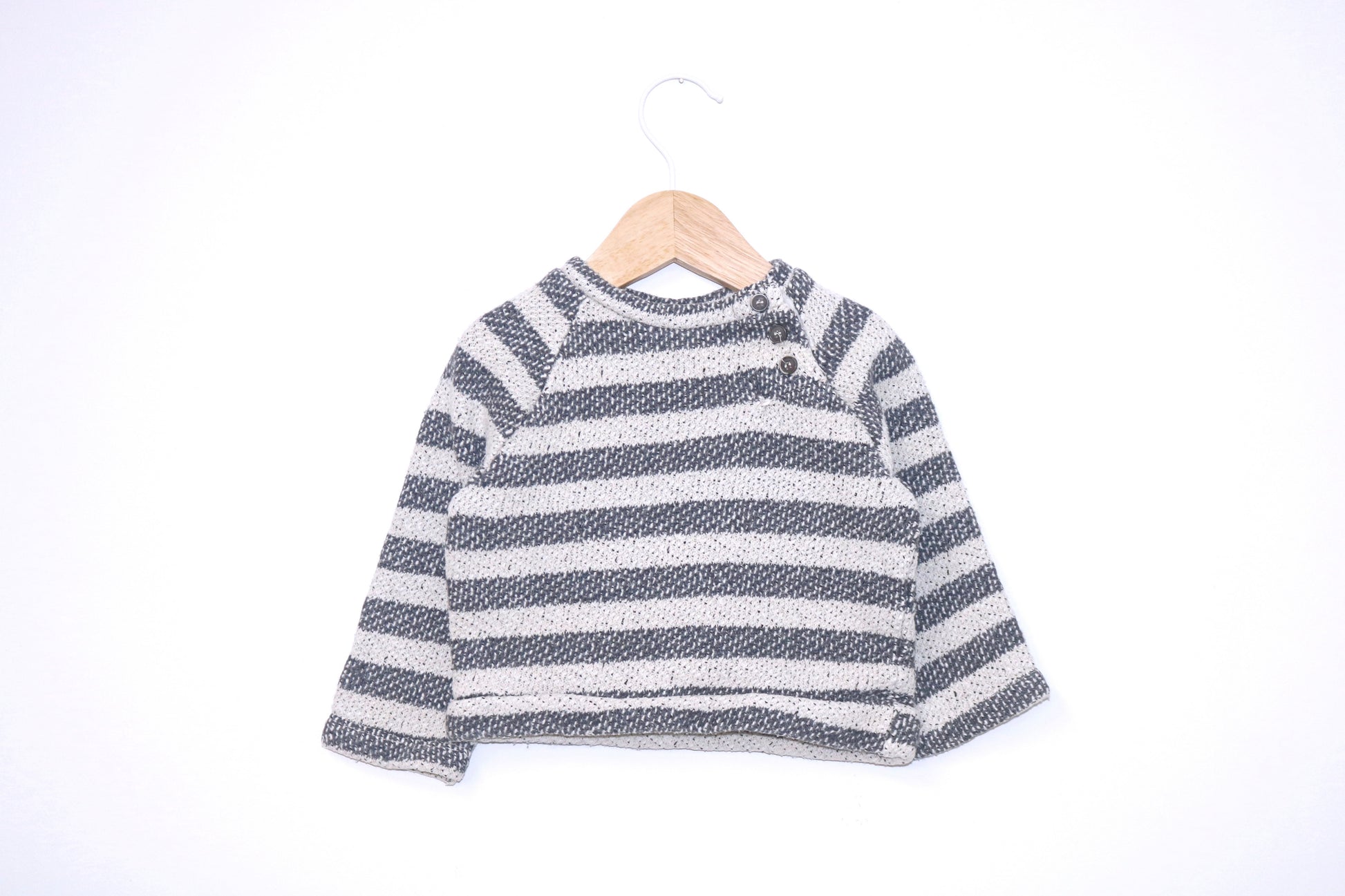 Camisola de Malha branca, azul às riscas. Estilo Prático para o teu bebé de 3 - 6 meses (68cm) 👦🕶️