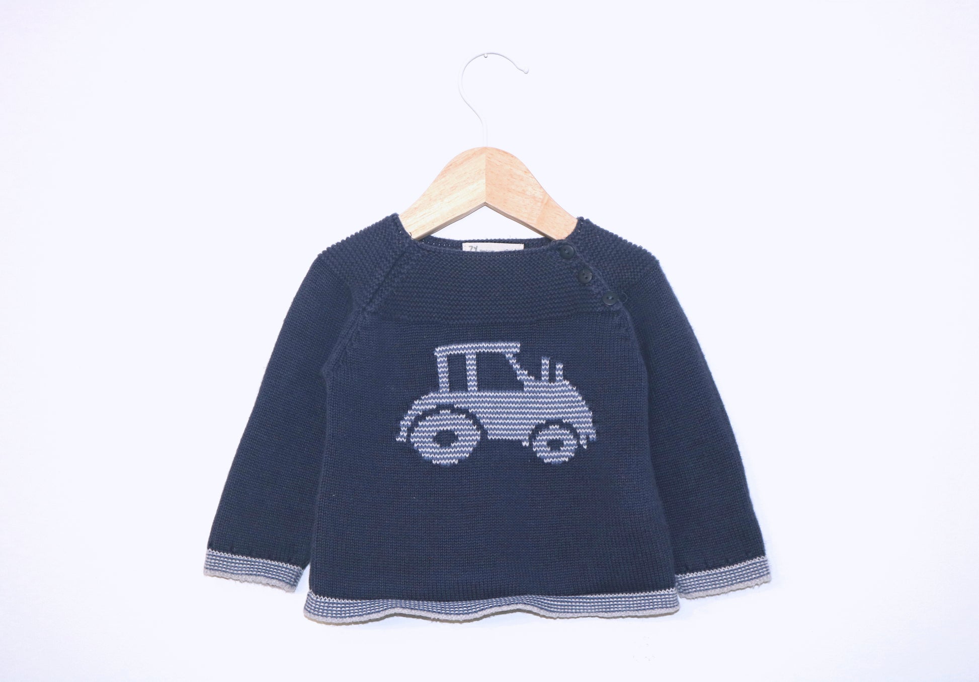 Camisola de Malha azul-escura. Estilo Prático para o teu bebé de 3 - 6 meses (61-68cm) 👦🕶️
