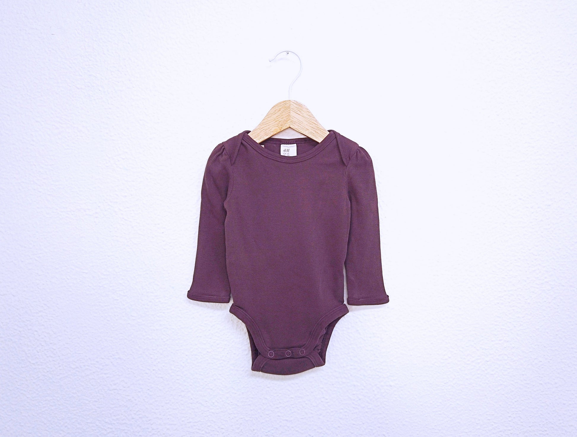 Body manga comprida roxo. Manga comprida com os ombros trespassados. Aperta no entrepernas com molas de pressão para vestir facilmente. Estilo Prático para o teu bebé de 3 - 6 meses (68cm) 👦🕶️