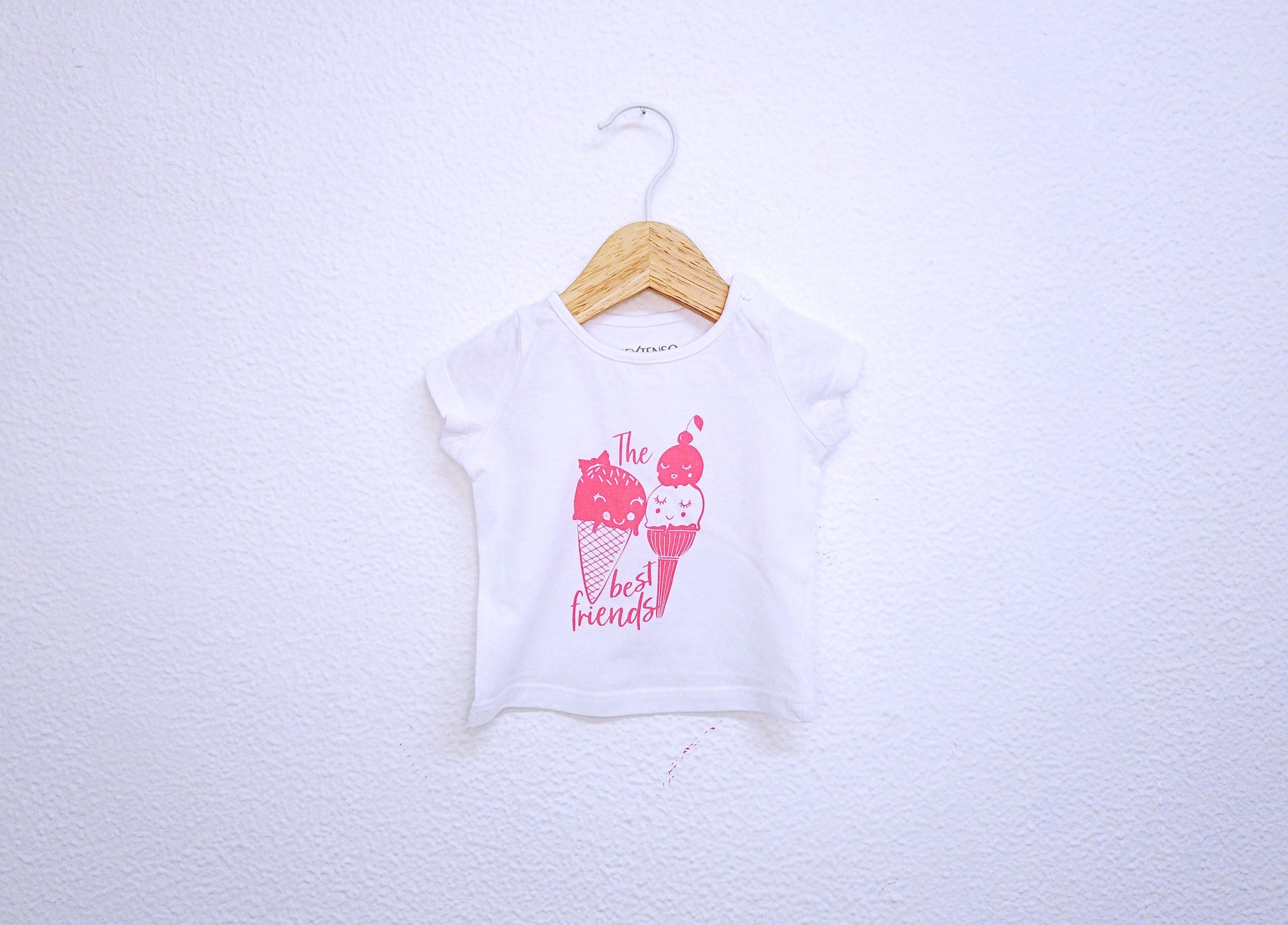 T-shirt branca com frase. Estilo Prático para o teu bebé de 1 - 3 meses (62cm) 👦🕶️