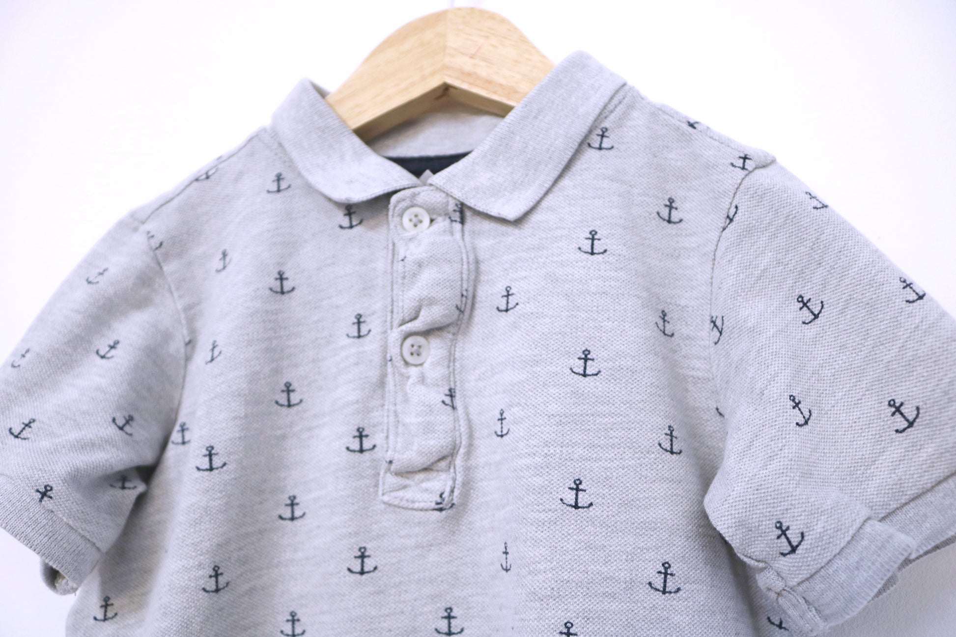 Polo cinzento-claro com padrão de âncoras. Estilo Prático para o teu bebé de 18 - 24 meses (92cm) 👦🕶️
