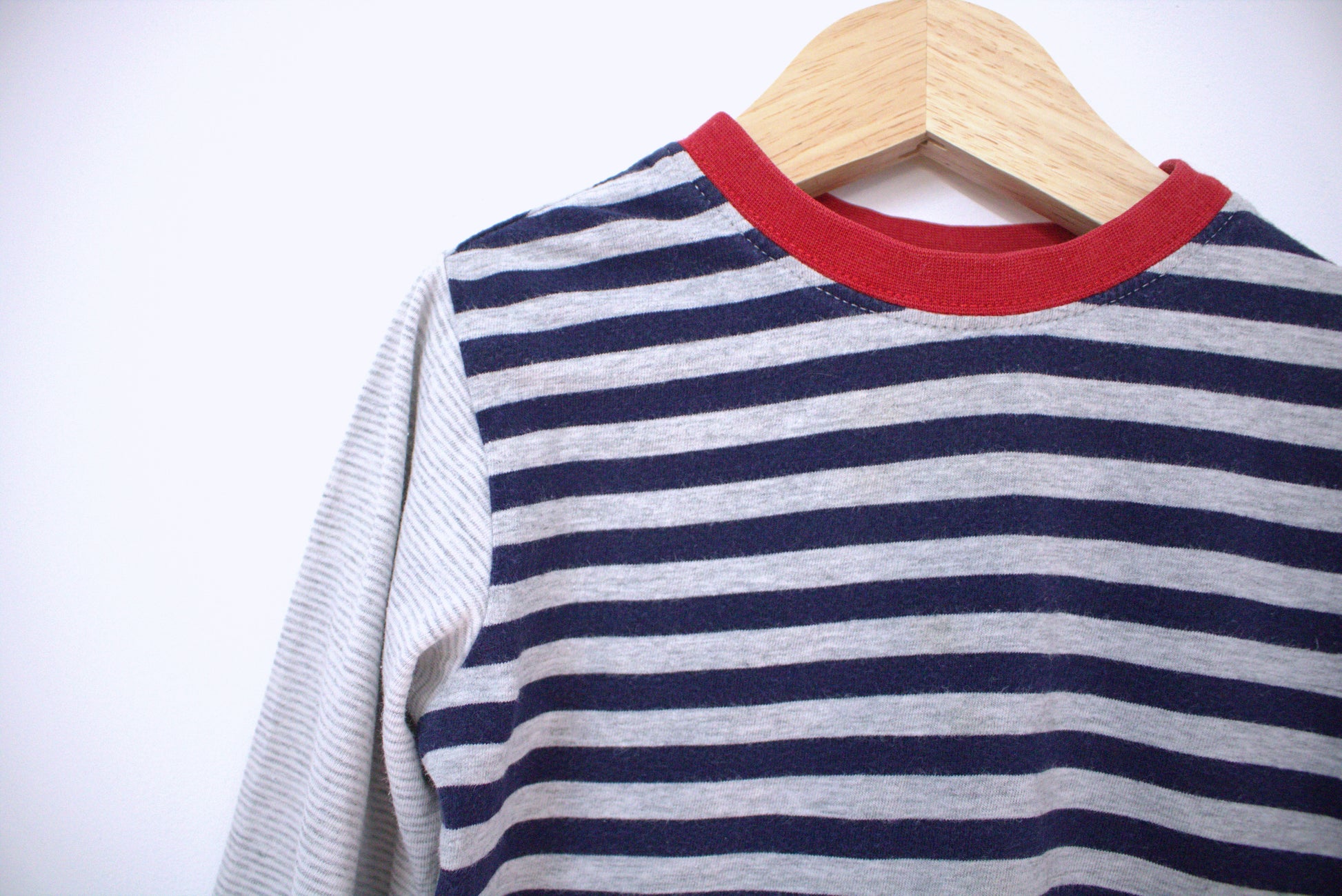 Camisola de Algodão Fina azul, cinzenta. Aperta com molas de pressão no ombro esquerdo para facilitar o vestir. Estilo Prático para o teu bebé de 12 - 18 meses (82cm) 👦🕶️